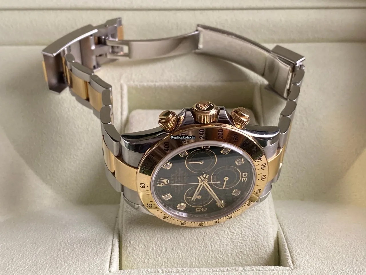 Be the first to review “1:1 Copies Rolex Daytona 116523 Caliber 4130 Automatic Movement 40mm Gold/steel Case Mens/unisex Watch” Cancel reply