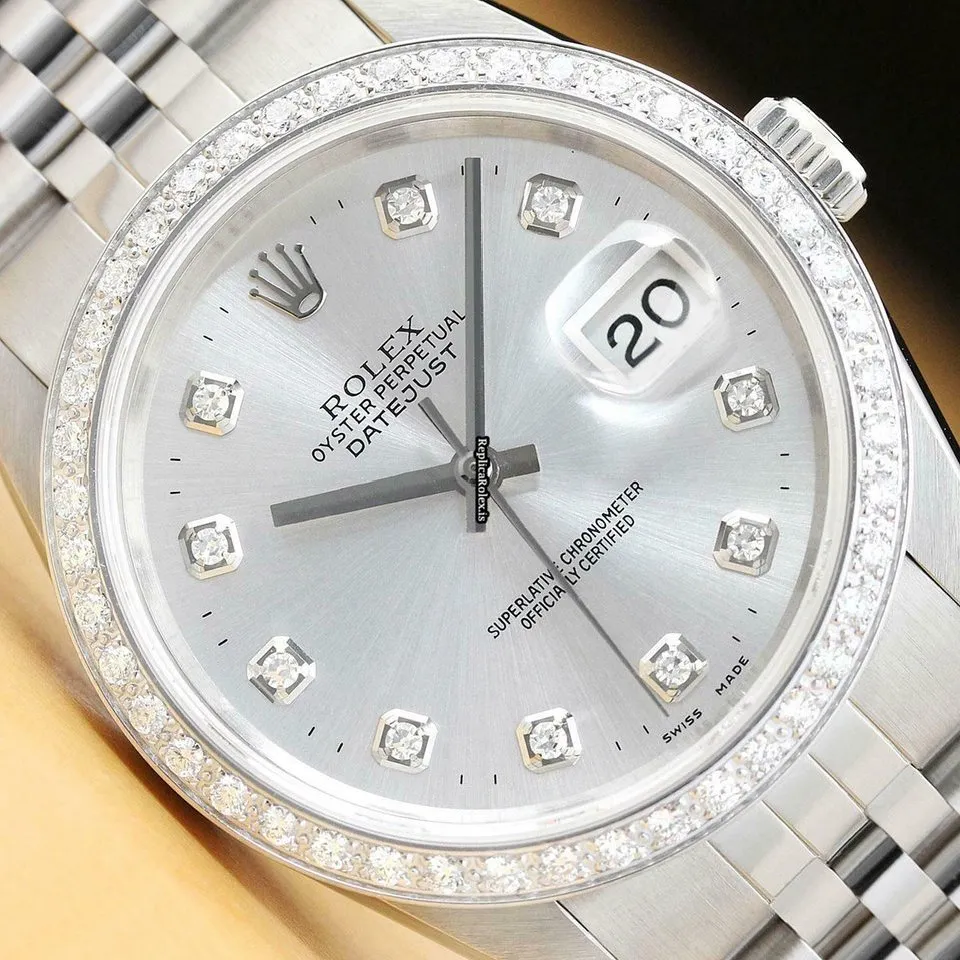 Tags: 16234, 191mm bracelet length, 20mm lug width, 31 jewels, 36mm case diameter, automatic movement, caliber 3135, mens watches, sapphire crystal, silver dial, steel bracelet color, steel bracelet material, steel case material, unisex watches, white gold bezel material