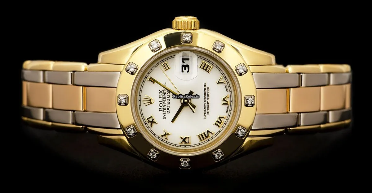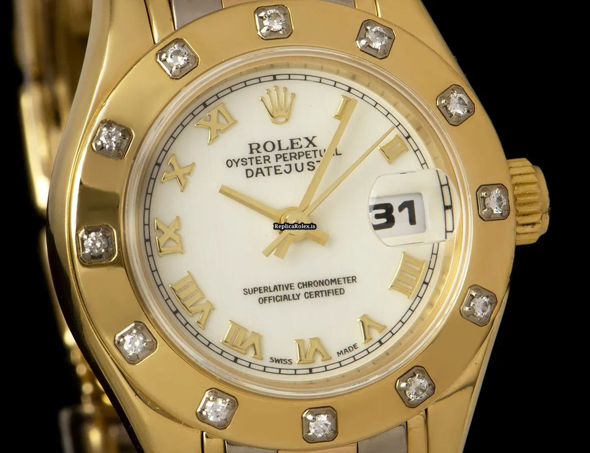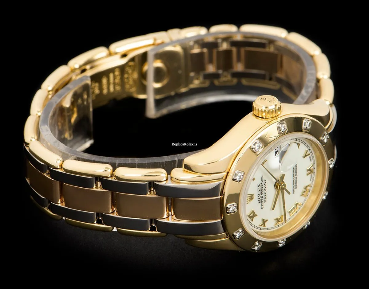 1:1 Imitation Rolex Lady-datejust Pearlmaster Caliber 2135 Automatic Movement 29mm Yellow Gold Case Womens Watch