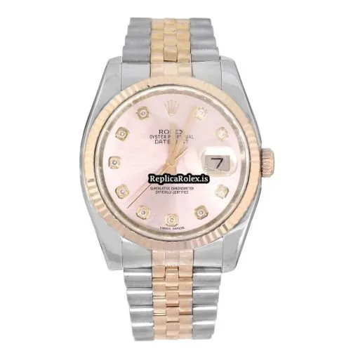 Tags: 116231, 36mm case diameter, automatic movement, fold clasp, gold/steel bracelet color, gold/steel bracelet material, hidden clasp, pink dial, rose gold bezel material, sapphire crystal, steel case material