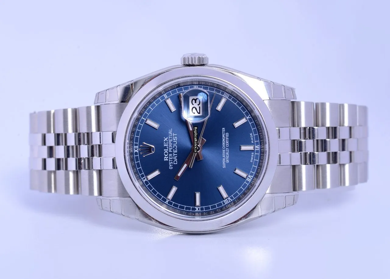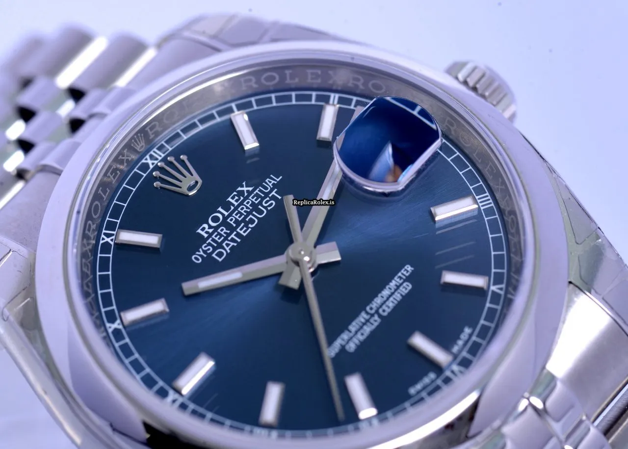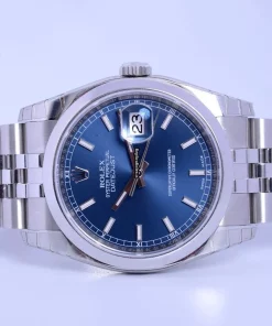Tags: 10m atm, 116200, 31 jewels, 36mm case diameter, 48h power reserve, automatic movement, blue dial, caliber 3135, fold clasp, mens watches, sapphire crystal, steel bezel material, steel bracelet color, steel bracelet material, steel case material, steel clasp material, unisex watches
