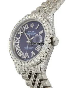 Tags: 1601, 36mm case diameter, automatic movement, blue dial, fold clasp, plastic crystal, roman numerals, steel bezel material, steel bracelet color, steel bracelet material, steel case material
