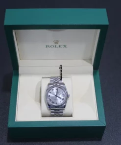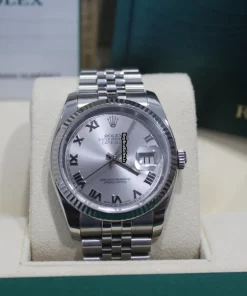 Tags: 10m atm, 116234, 31 jewels, 36mm case diameter, 48h power reserve, automatic movement, caliber 3135, fold clasp, mens watches, sapphire crystal, silver dial, steel bracelet color, steel bracelet material, steel case material, steel clasp material, unisex watches, white gold bezel material