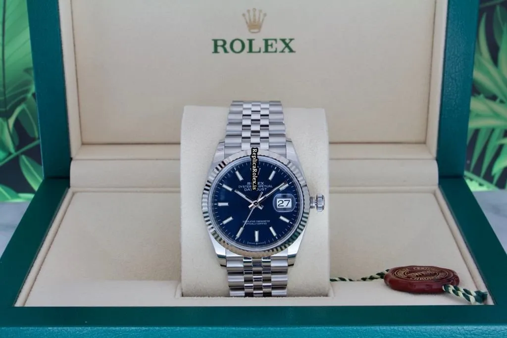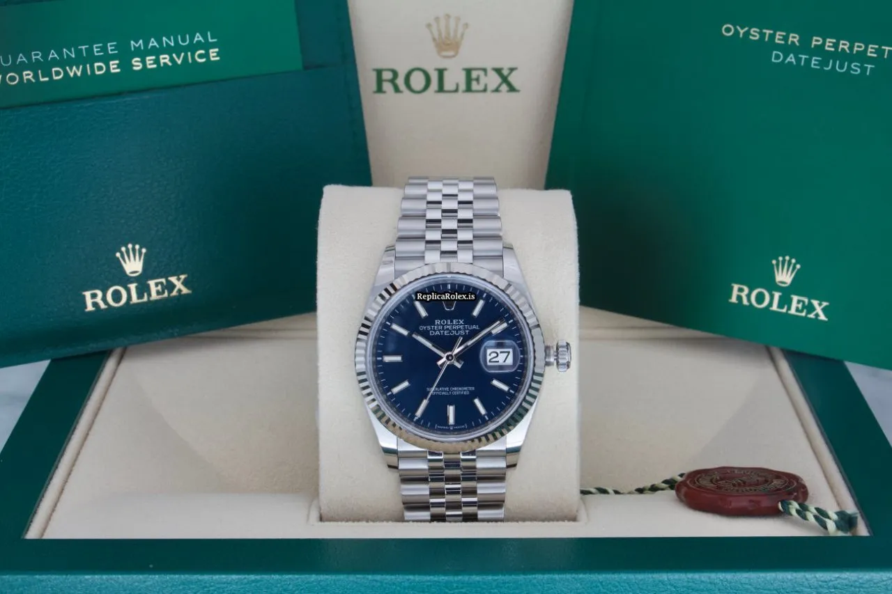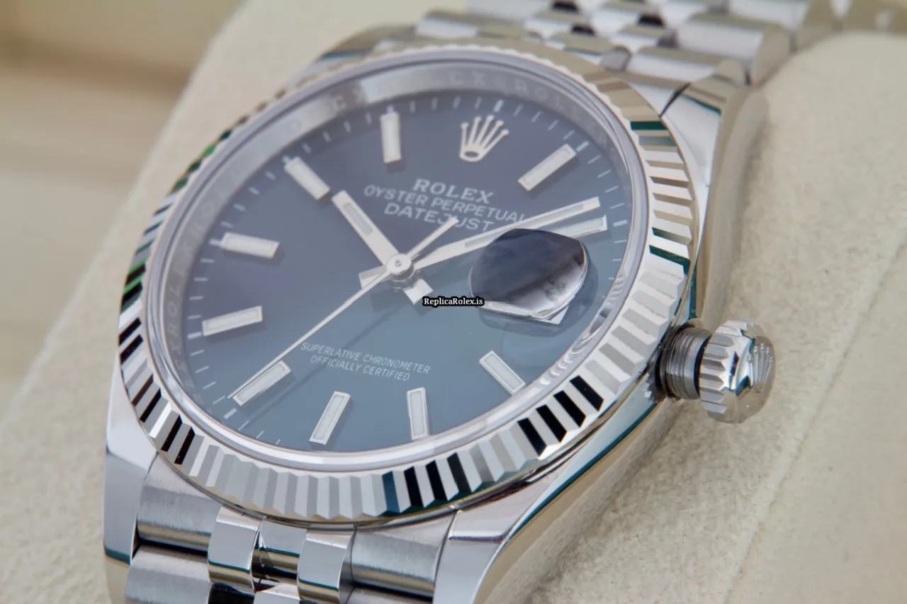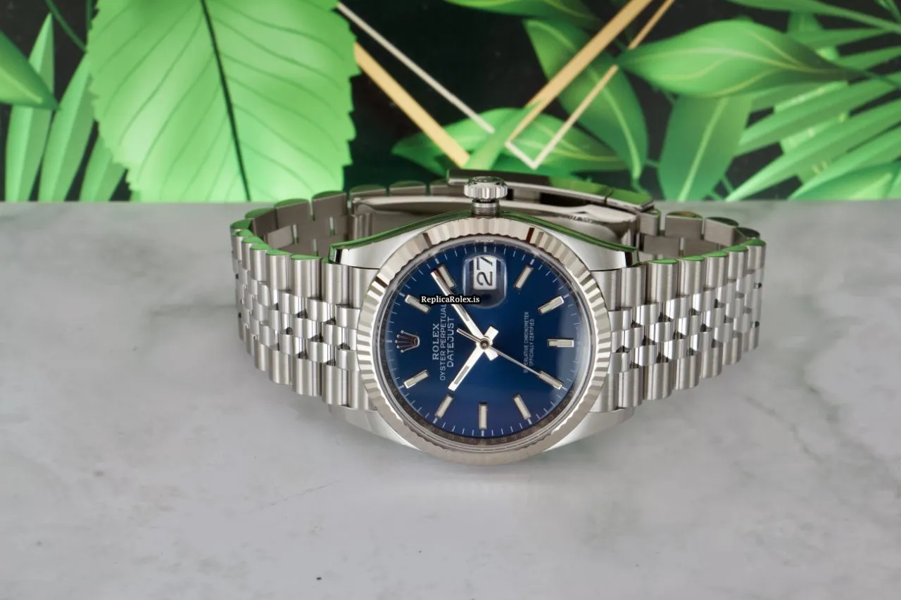 Tags: 10m atm, 126234, 31 jewels, 36mm case diameter, 70h power reserve, automatic movement, blue dial, caliber 3135, caliber 3235, fold clasp, mens watches, no numerals, sapphire crystal, steel bracelet color, steel bracelet material, steel case material, steel clasp material, unisex watches, white gold bezel material