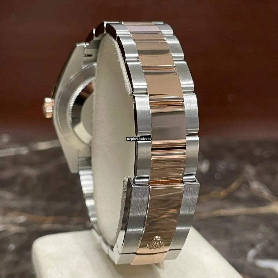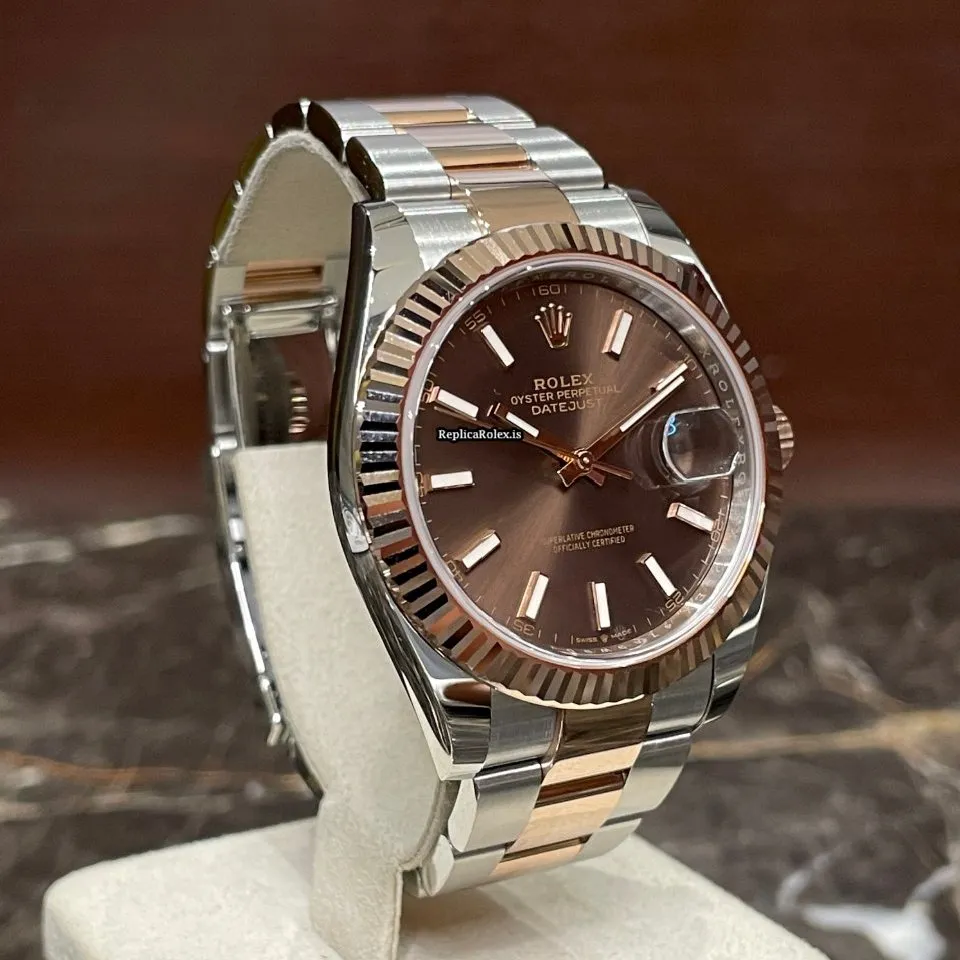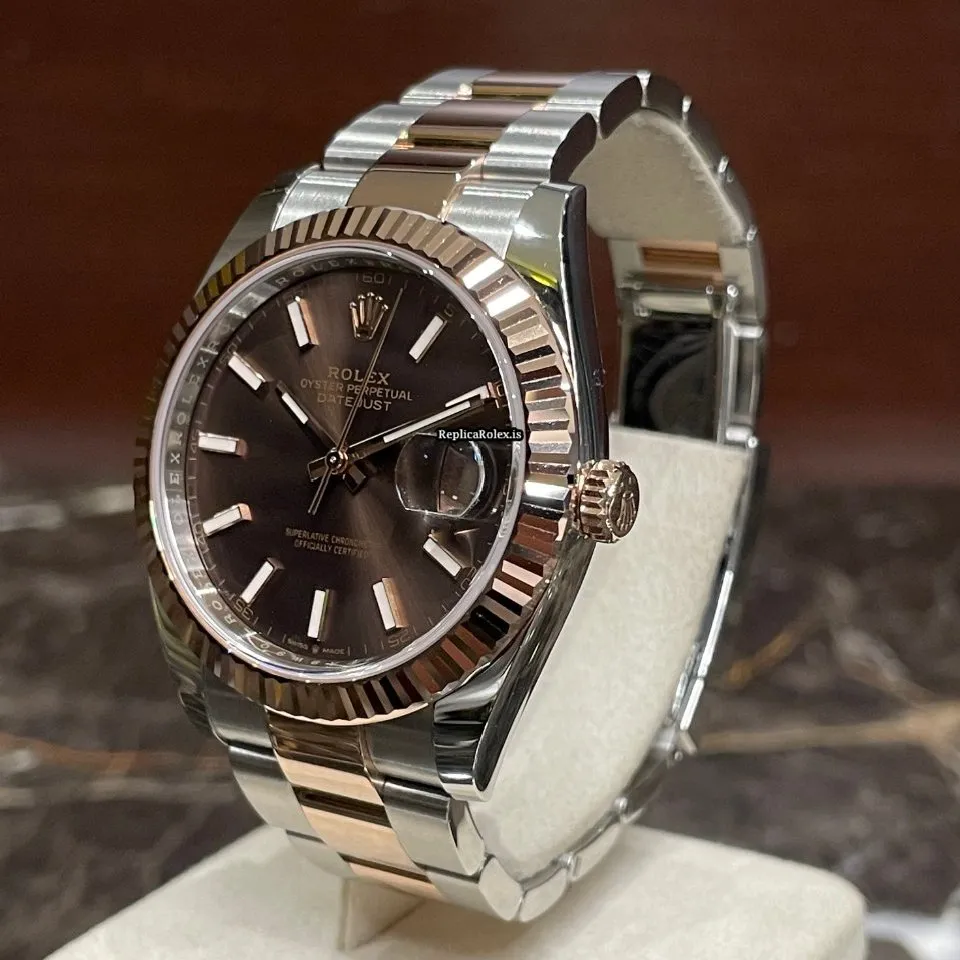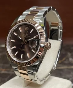 Tags: 10m atm, 126331, 31 jewels, 41mm case diameter, 70h power reserve, automatic movement, brown dial, caliber 3235, fold clasp, gold/steel bracelet color, gold/steel bracelet material, gold/steel case material, gold/steel clasp material, mens watches, no numerals, rose gold bezel material, sapphire crystal, unisex watches