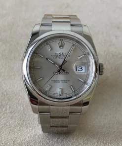 Tags: 10m atm, 116200, 31 jewels, 36mm case diameter, 48h power reserve, automatic movement, caliber 3135, fold clasp, mens watches, sapphire crystal, silver dial, steel bezel material, steel bracelet color, steel bracelet material, steel case material, steel clasp material, unisex watches