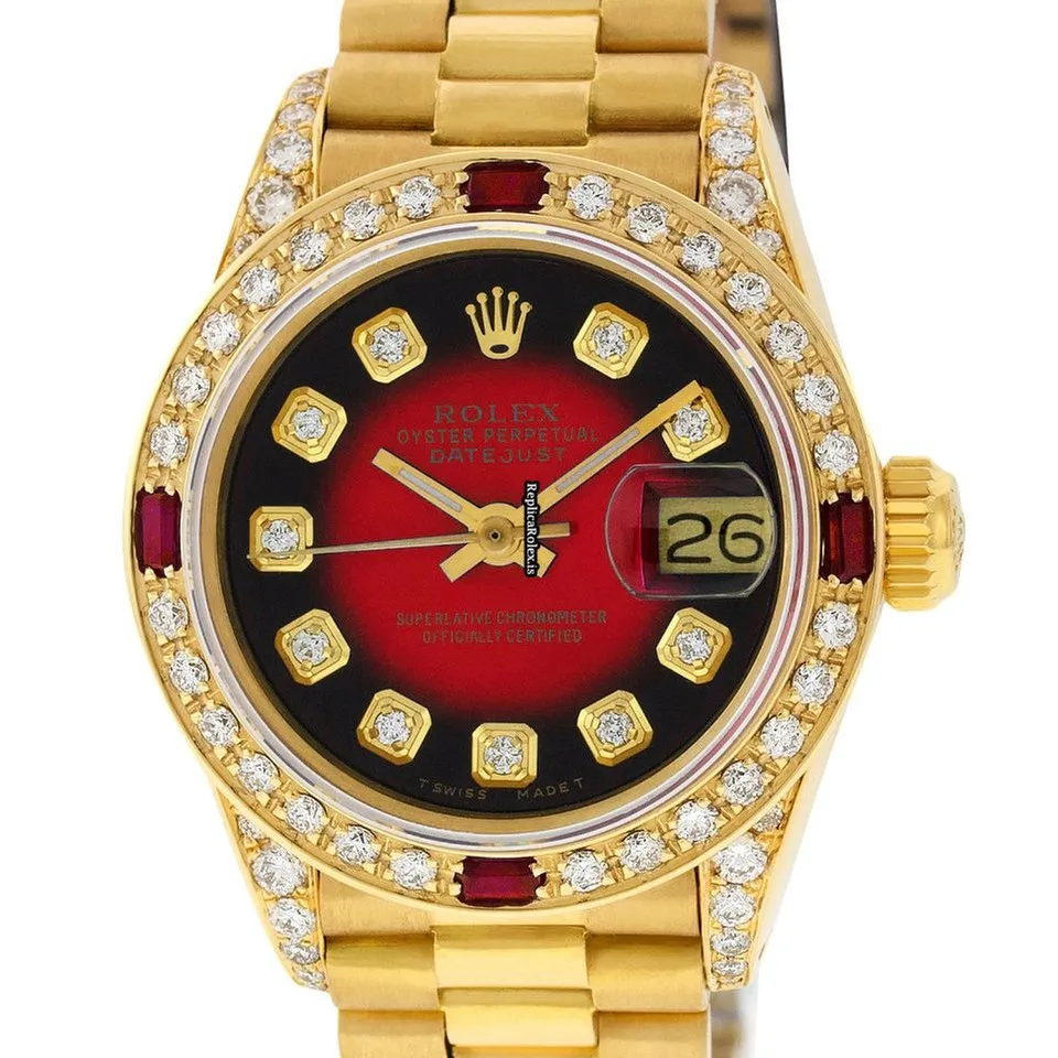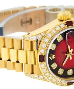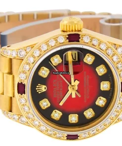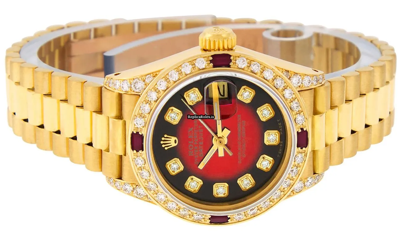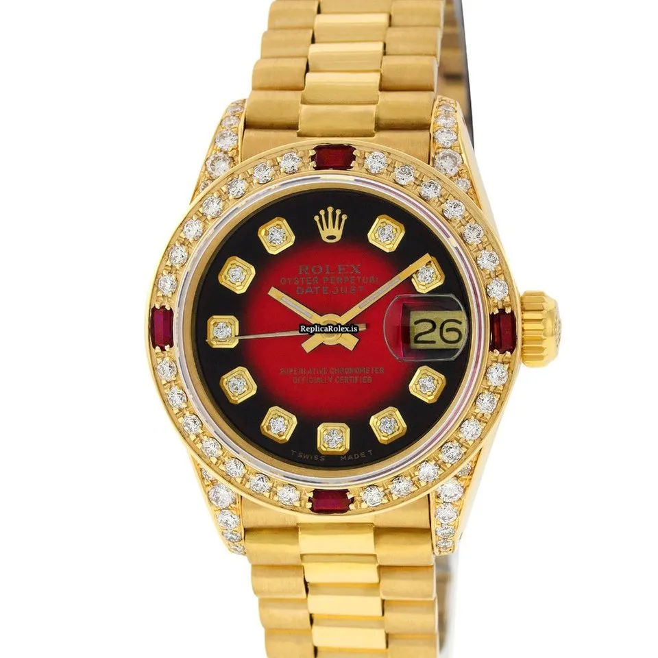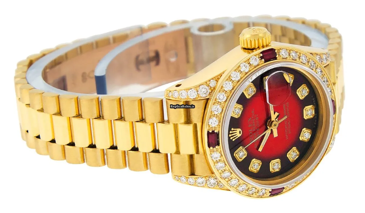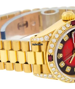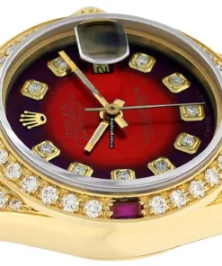 Tags: 13mm lug width, 26mm case diameter, 29 jewels, automatic, automatic movement, fold clasp, gold bracelet color, hidden clasp, red dial, sapphire crystal, womens watches, yellow gold bezel material, yellow gold bracelet material, yellow gold case material, yellow gold clasp material