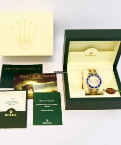 Tags: 16613, 30m atm, 31 jewels, 40mm case diameter, 48h power reserve, automatic movement, blue dial, caliber 3135, fold clasp, gold/steel bracelet color, gold/steel bracelet material, mens watches, no numerals, sapphire crystal, steel case material, unisex watches, yellow gold bezel material