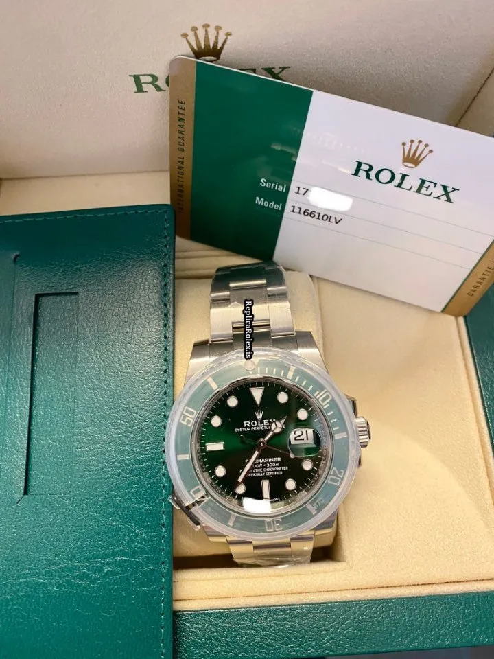 Tags: 116610lv, 30m atm, 31 jewels, 40mm case diameter, 48h power reserve, automatic movement, caliber 3135, ceramic bezel material, fold clasp, green dial, mens watches, no numerals, sapphire crystal, steel bracelet color, steel bracelet material, steel case material, steel clasp material, unisex watches