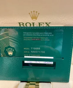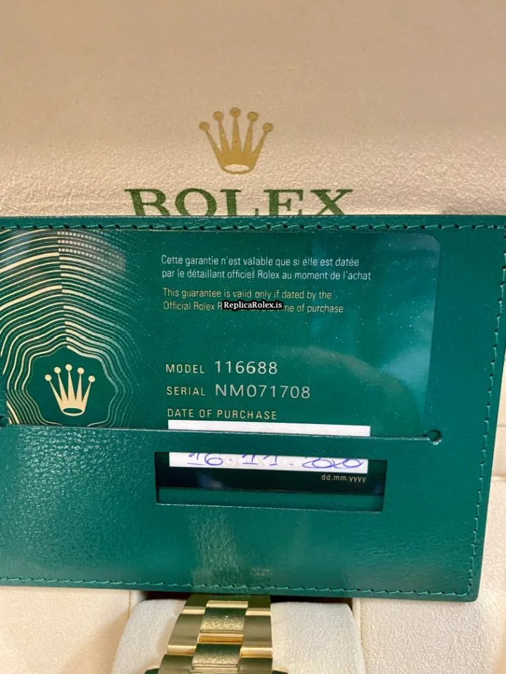 Tags: 10m atm, 116688, 44mm case diameter, 72h power reserve, automatic movement, caliber 4161, ceramic bezel material, fold clasp, gold bracelet color, mens watches, no numerals, sapphire crystal, unisex watches, white dial, yellow gold bracelet material, yellow gold case material, yellow gold clasp material