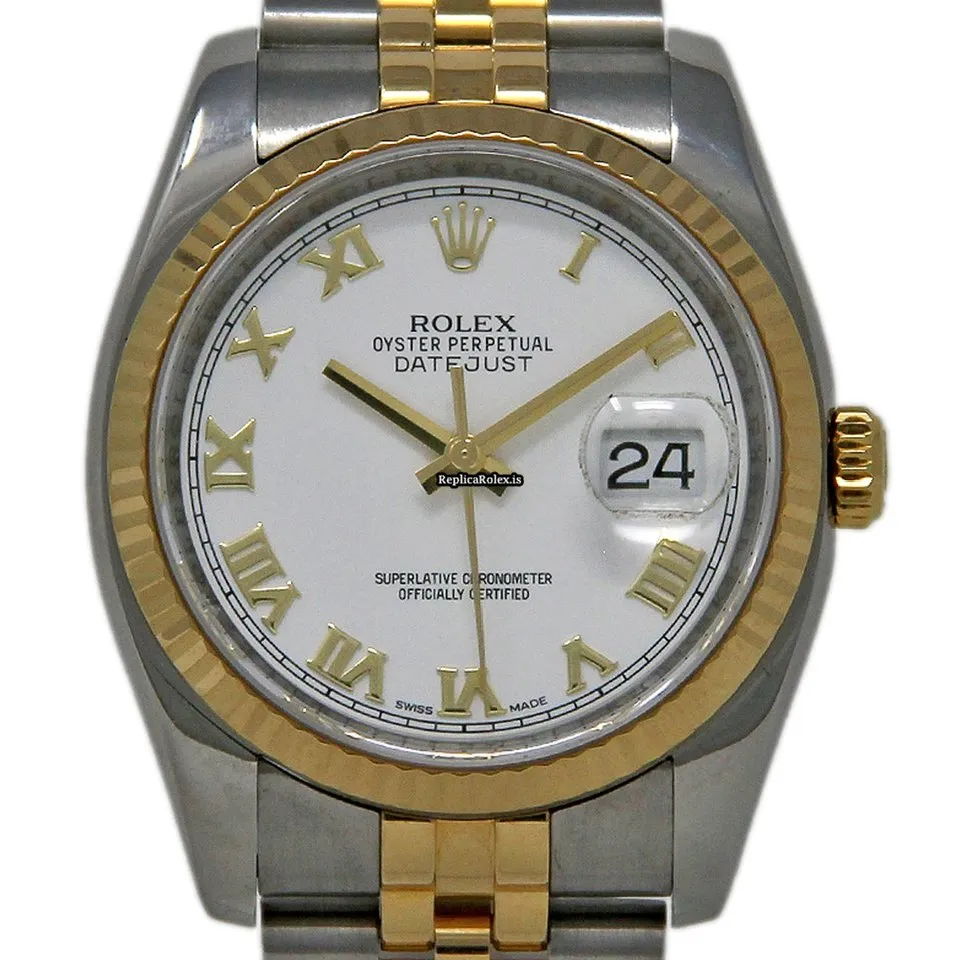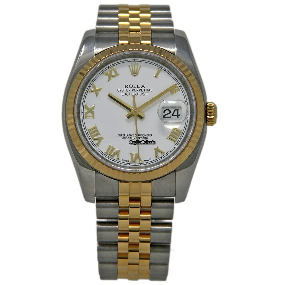 Tags: 10m atm, 116233, 190mm bracelet length, 36mm case diameter, automatic movement, gold/steel bracelet material, mens watches, sapphire crystal, steel case material, unisex watches, white dial, yellow gold bezel material