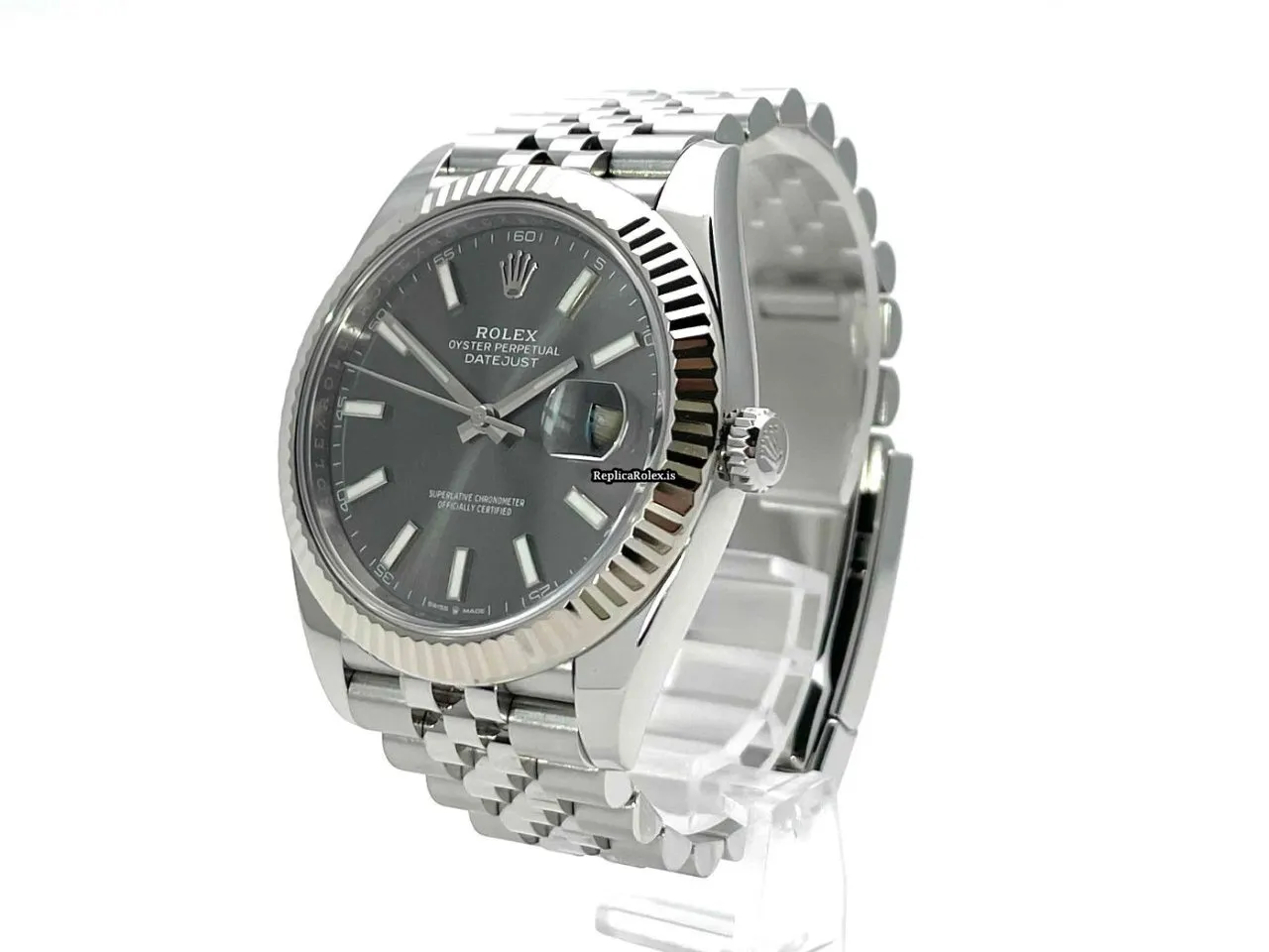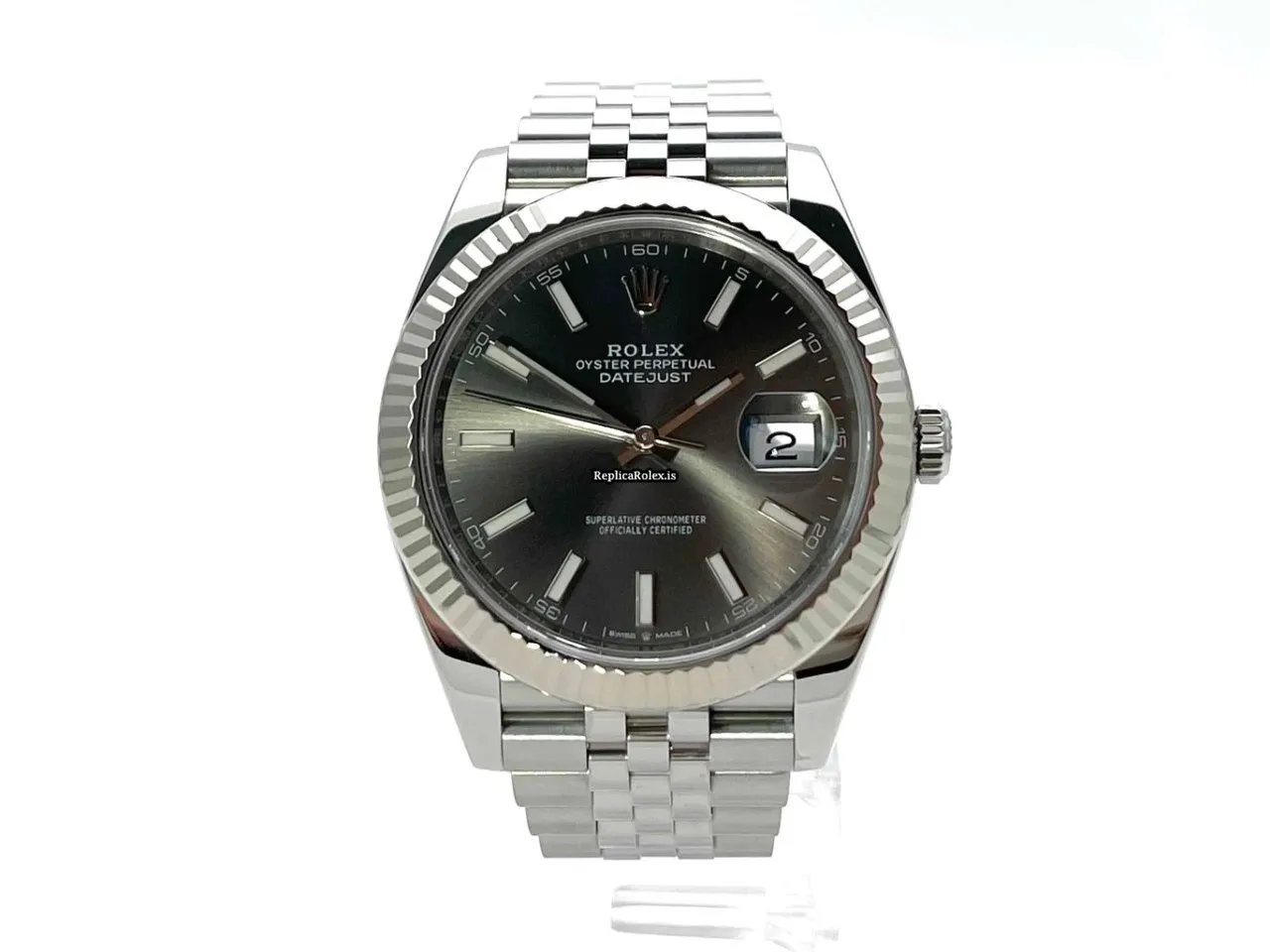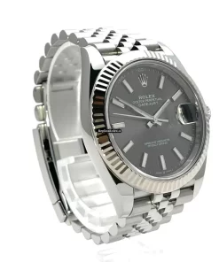 Tags: 10m atm, 126334, 41mm case diameter, 70h power reserve, automatic movement, caliber 3235, fold clasp, grey dial, mens watches, no numerals, sapphire crystal, steel bracelet color, steel bracelet material, steel case material, steel clasp material, unisex watches, white gold bezel material