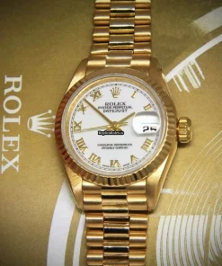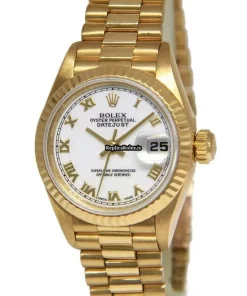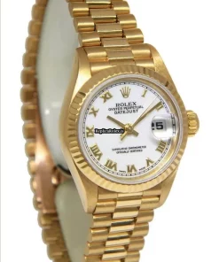 Tags: 26mm case diameter, 69178, automatic movement, fold clasp, gold bracelet color, roman numerals, white dial, womens watches, yellow gold bracelet material, yellow gold case material