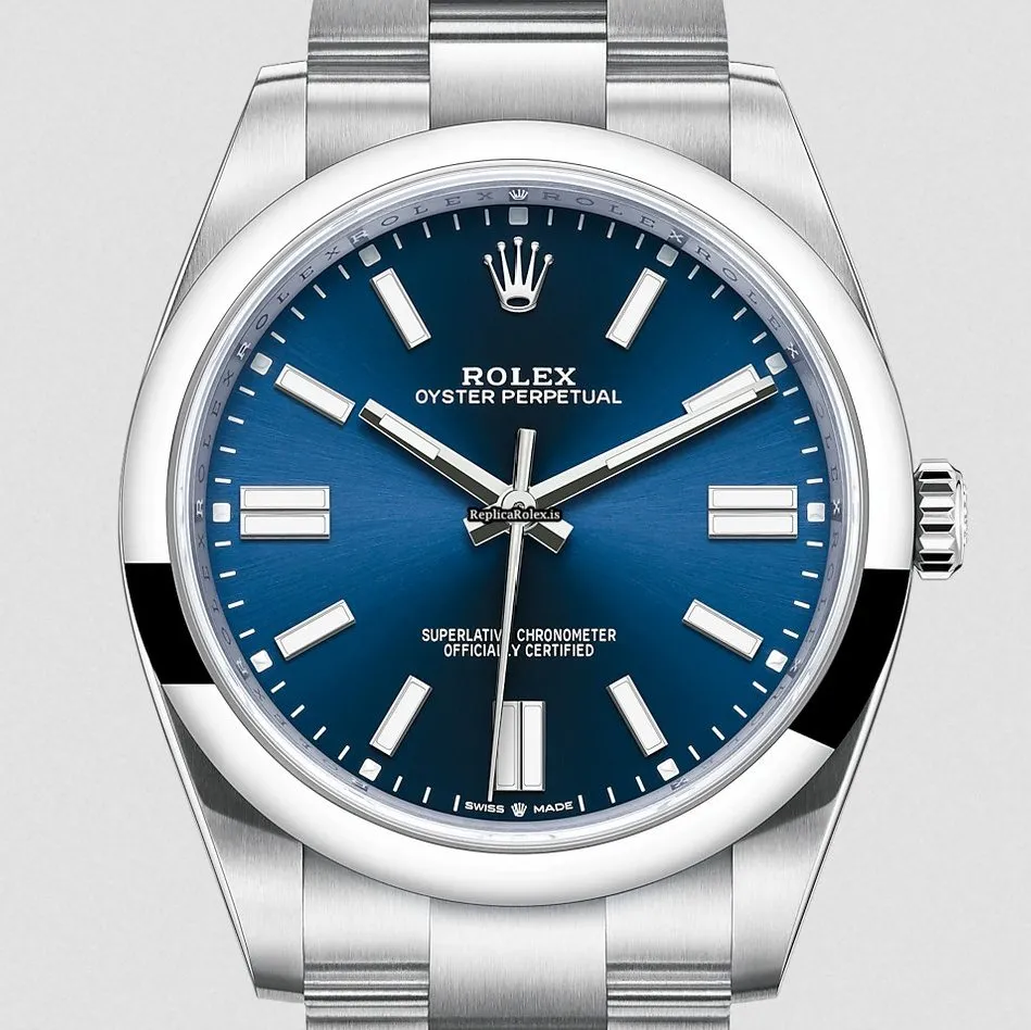 Tags: 10m atm, 124300, 31 jewels, 41mm case diameter, 70h power reserve, automatic movement, blue dial, caliber 3230, double-fold clasp, mens watches, no numerals, sapphire crystal, steel bezel material, steel bracelet color, steel bracelet material, steel case material, steel clasp material, unisex watches
