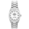 Tags: 1601, 191mm bracelet length, 20mm lug width, 26 jewels, 36mm case diameter, automatic movement, caliber 1570, mens watches, plexiglass crystal, silver dial, steel bracelet color, steel bracelet material, steel case material, unisex watches, white gold bezel material