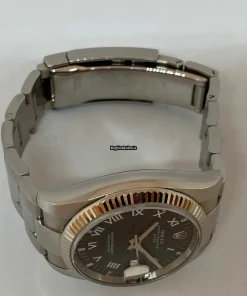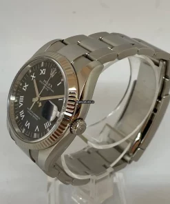 Tags: 10m atm, 115234, 31 jewels, 34mm case diameter, 48h power reserve, automatic movement, black dial, caliber 3135, fold clasp, mens watches, sapphire crystal, steel bracelet color, steel bracelet material, steel case material, steel clasp material, unisex watches, white gold bezel material