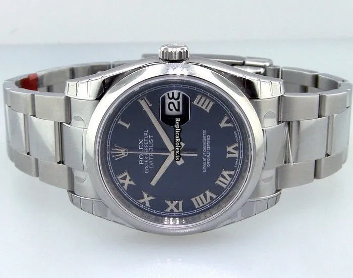 Tags: 10m atm, 116200, 36mm case diameter, automatic movement, blue dial, mens watches, roman numerals, sapphire crystal, silver bracelet color, steel bezel material, steel bracelet material, steel case material, unisex watches