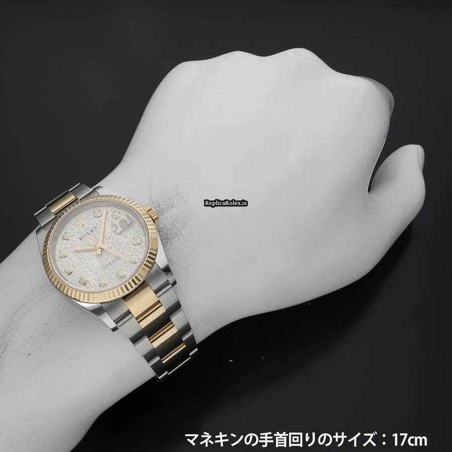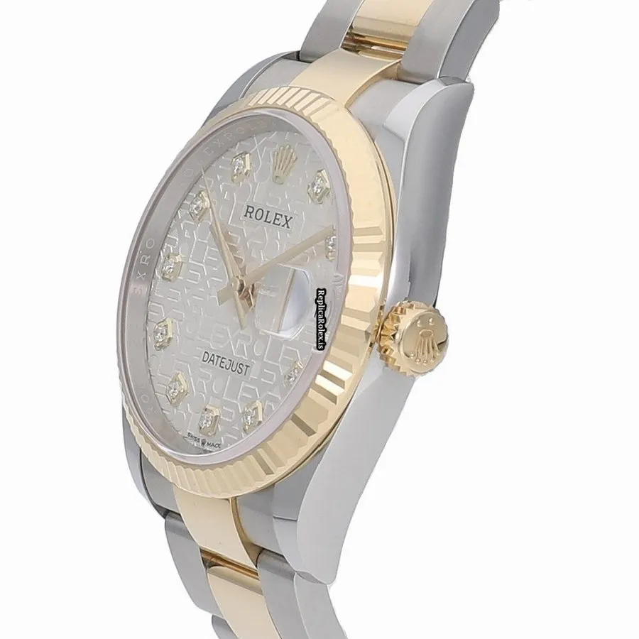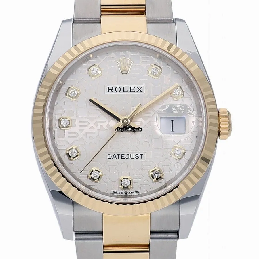 Tags: 126233g, 36mm case diameter, automatic movement, caliber 3235, gold/steel case material, silver dial