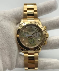 Tags: 10m atm, 116528, 40mm case diameter, 44 jewels, 72h power reserve, automatic movement, caliber 4130, fold clasp, gold bracelet color, mens watches, mother of pearl dial, no numerals, sapphire crystal, unisex watches, yellow gold bezel material, yellow gold bracelet material, yellow gold case material, yellow gold clasp material