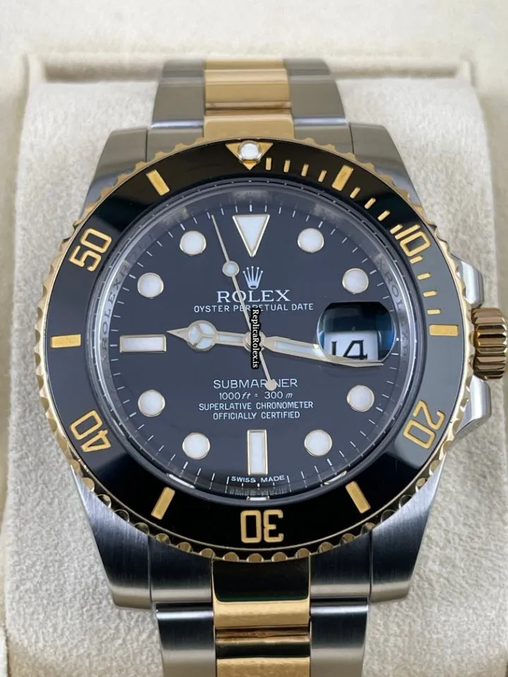 Tags: 116613ln, 30m atm, 31 jewels, 40mm case diameter, 48h power reserve, automatic movement, black dial, caliber 3135, ceramic bezel material, fold clasp, gold/steel bracelet color, gold/steel bracelet material, gold/steel case material, gold/steel clasp material, mens watches, no numerals, sapphire crystal, unisex watches