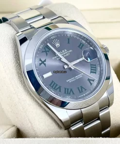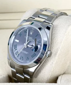 Tags: 10m atm, 126300-0013, 41mm case diameter, automatic movement, caliber 3235, fold clasp, grey dial, mens watches, roman numerals, sapphire crystal, steel bezel material, steel bracelet color, steel bracelet material, steel case material, steel clasp material, unisex watches