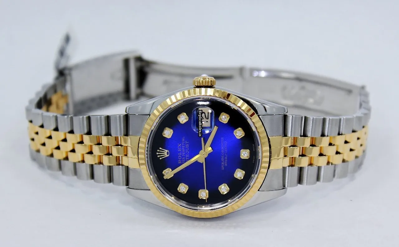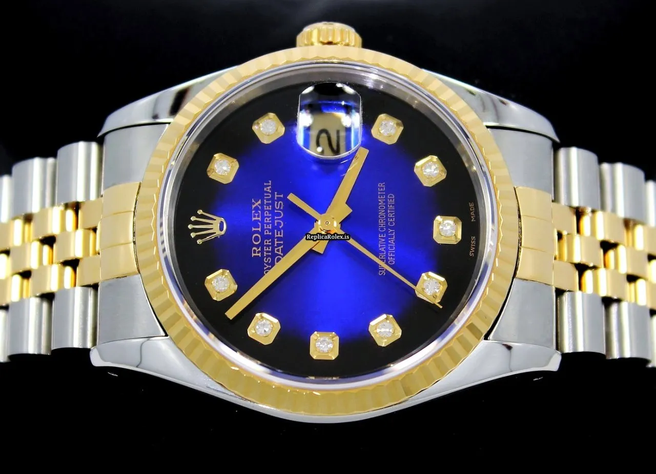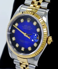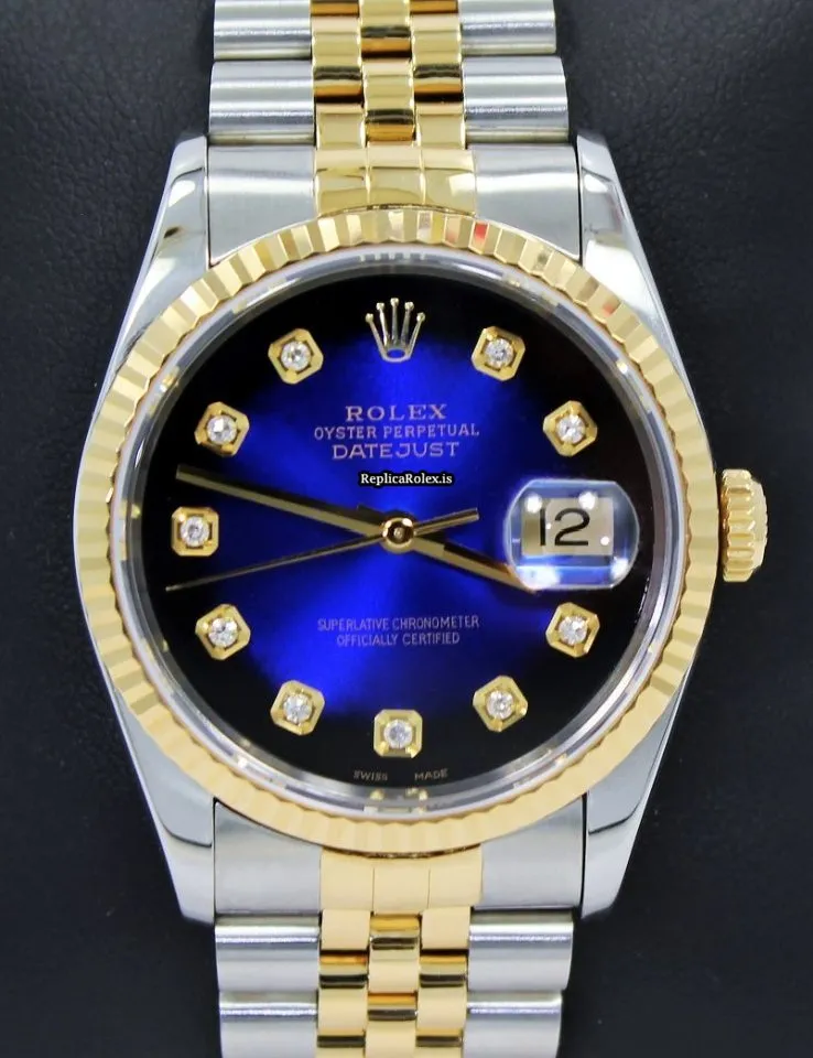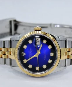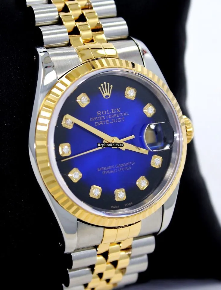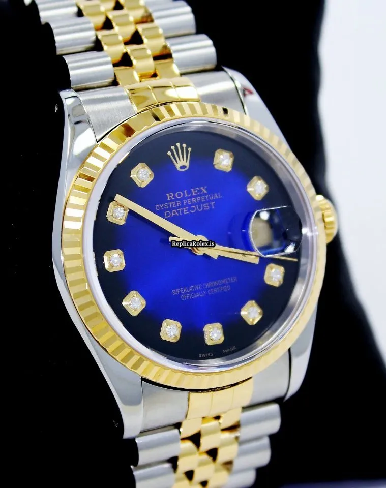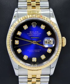 Tags: 16233, 31 jewels, 36mm case diameter, automatic movement, blue dial, caliber 3135 31, fold clasp, gold/steel bracelet material, sapphire crystal, steel case material, yellow gold bezel material