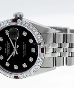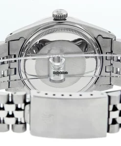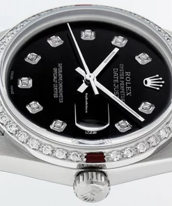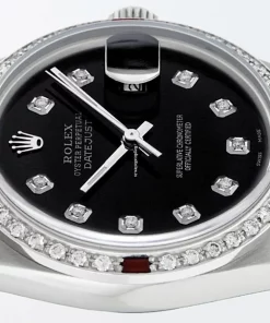 Tags: 20mm lug width, 27 jewels, 36mm case diameter, automatic movement, black dial, caliber 3035, fold clasp, mens watches, sapphire crystal, silver bracelet color, steel bracelet material, steel case material, steel clasp material, unisex watches, white gold bezel material