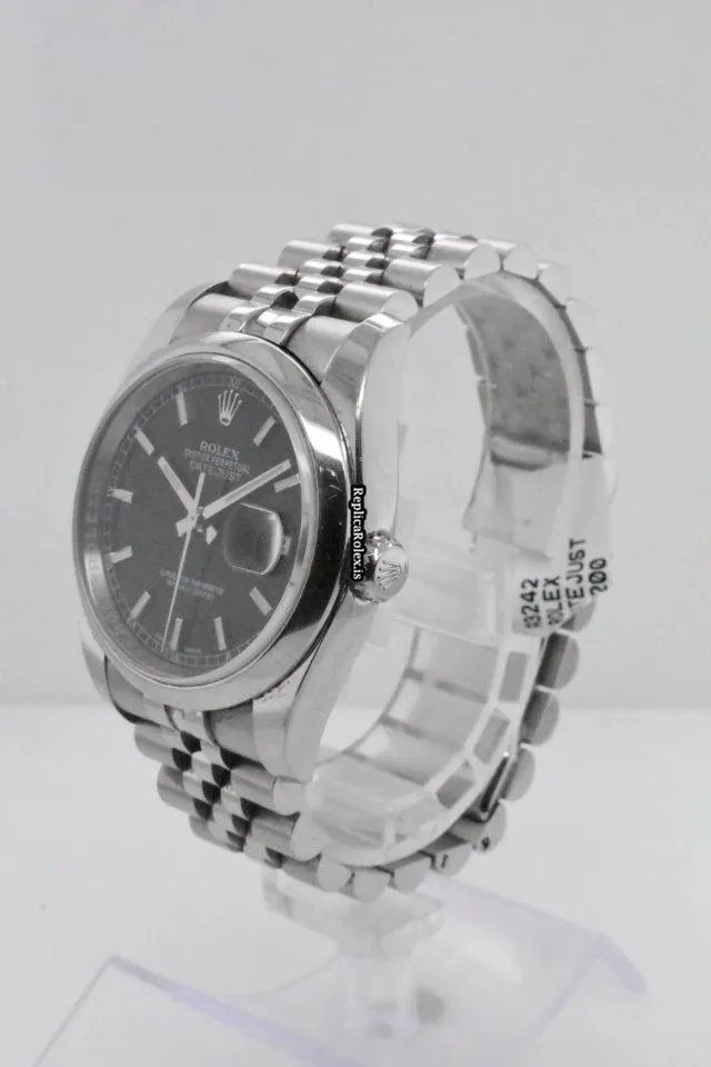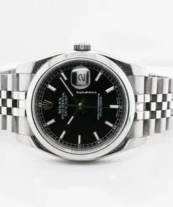 Tags: 10m atm, 116200, 31 jewels, 36mm case diameter, 48h power reserve, automatic movement, black dial, caliber 3135, fold clasp, mens watches, no numerals, sapphire crystal, steel bezel material, steel bracelet color, steel bracelet material, steel case material, steel clasp material, unisex watches