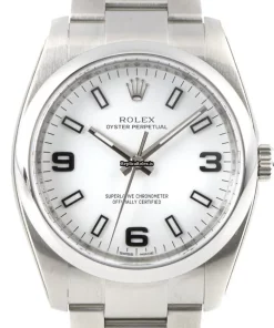 Tags: 11.5mm, 114200, 180mm bracelet length, 19mm lug width, 34mm case diameter, automatic movement, caliber 3130, fold clasp, mens watches, sapphire crystal, steel bracelet material, steel case material, unisex watches, white dial