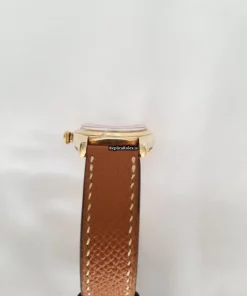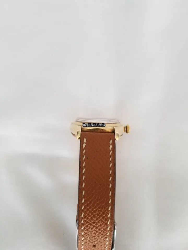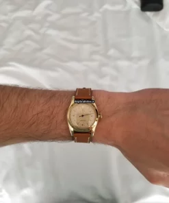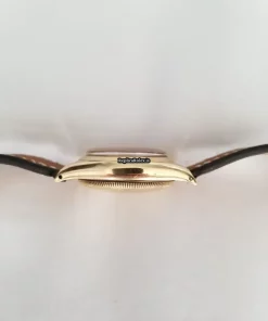Tags: 17 jewels, 3131, 32x38mm case diameter, arabic numerals, automatic movement, brown bracelet color, buckle clasp, caliber 630, leather bracelet material, mens watches, plexiglass crystal, silver dial, steel clasp material, unisex watches, yellow gold bezel material, yellow gold case material