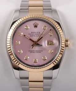 Tags: 116233, 20mm lug width, 36mm case diameter, automatic movement, gold bracelet color, pink dial, sapphire crystal, steel bracelet material, steel case material, yellow gold bezel material