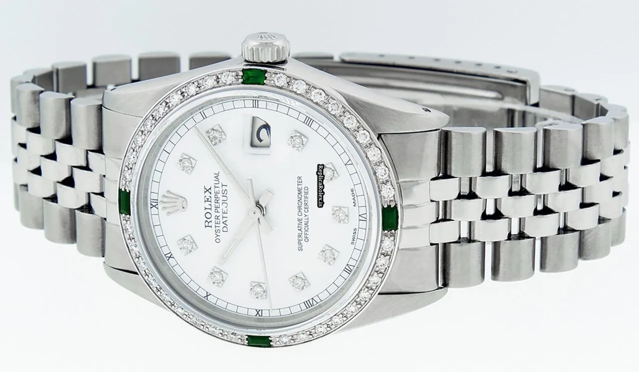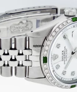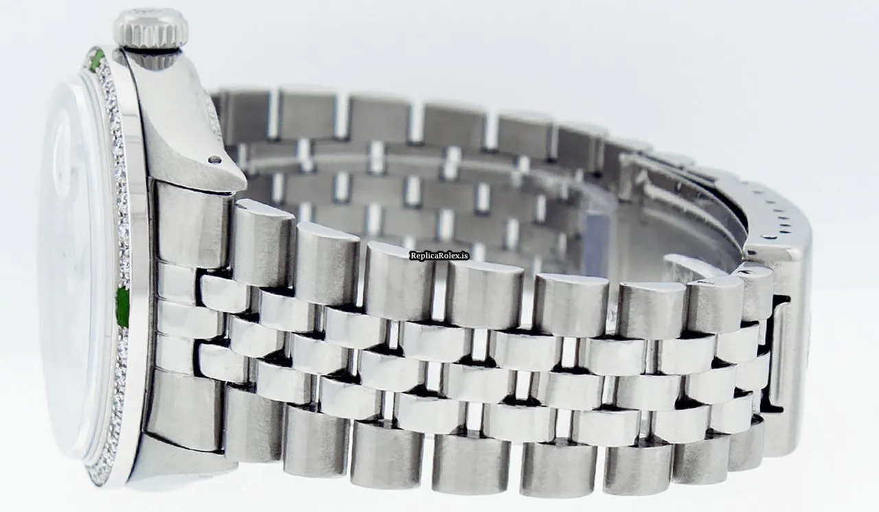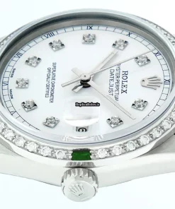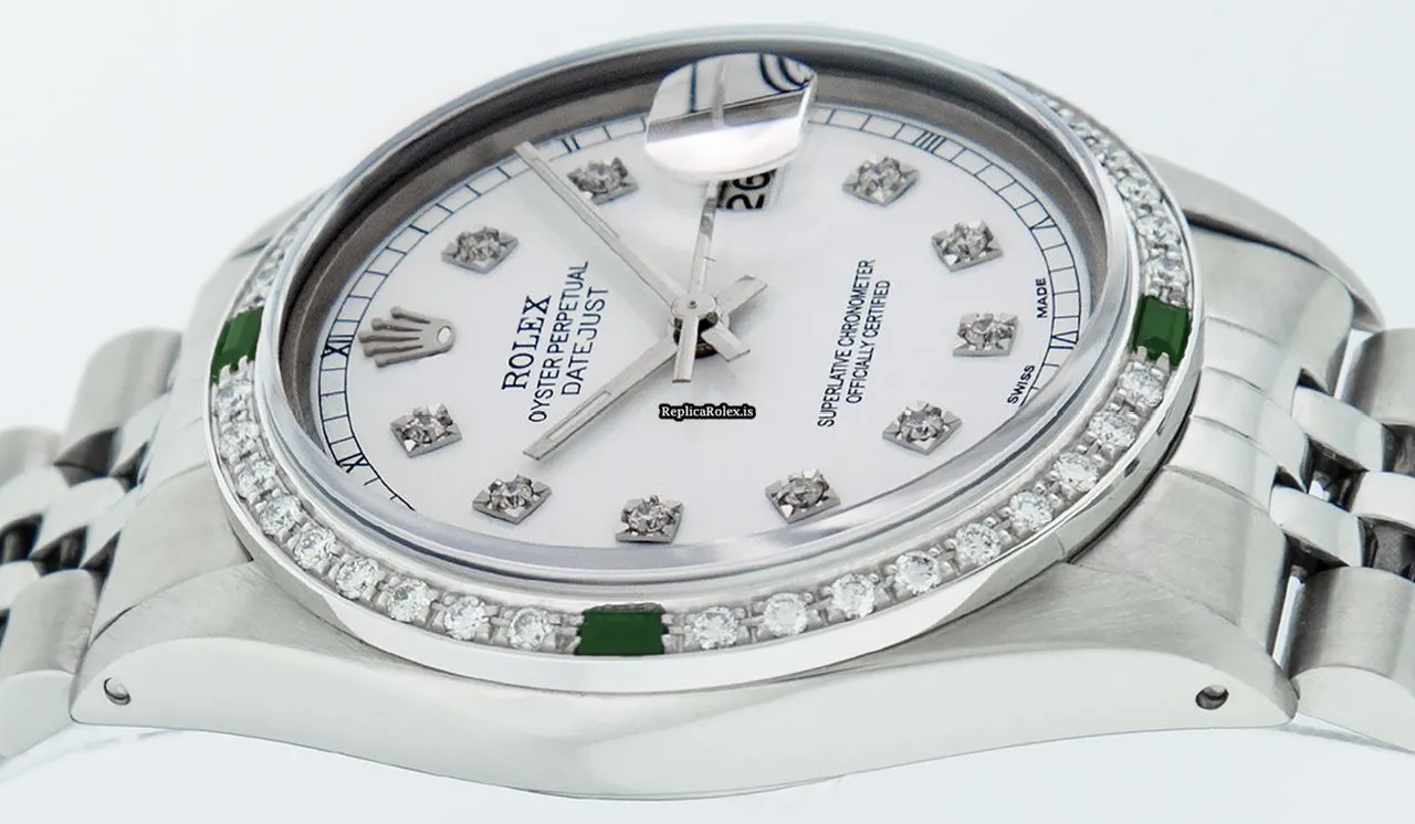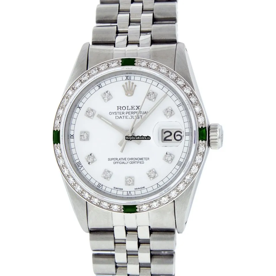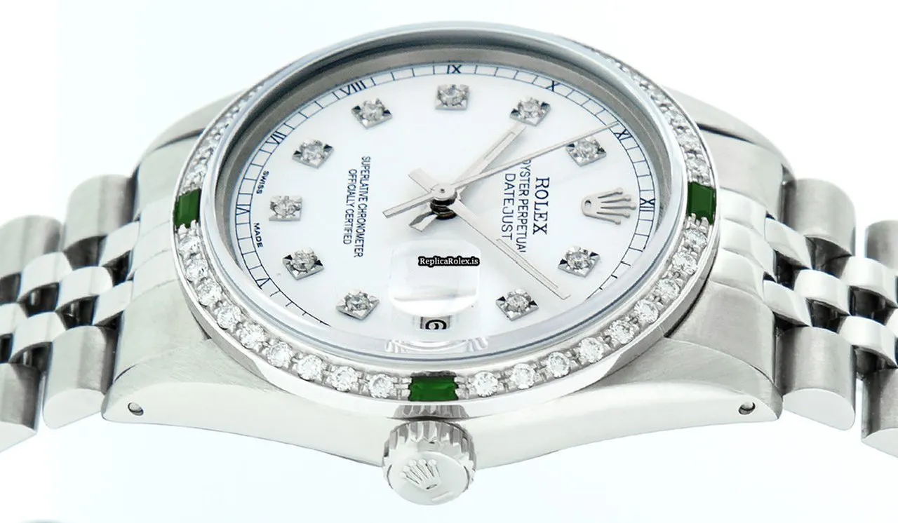 Tags: 20mm lug width, 27 jewels, 36mm case diameter, automatic movement, caliber 3035, fold clasp, mens watches, sapphire crystal, silver bracelet color, steel bracelet material, steel case material, steel clasp material, unisex watches, white dial, white gold bezel material