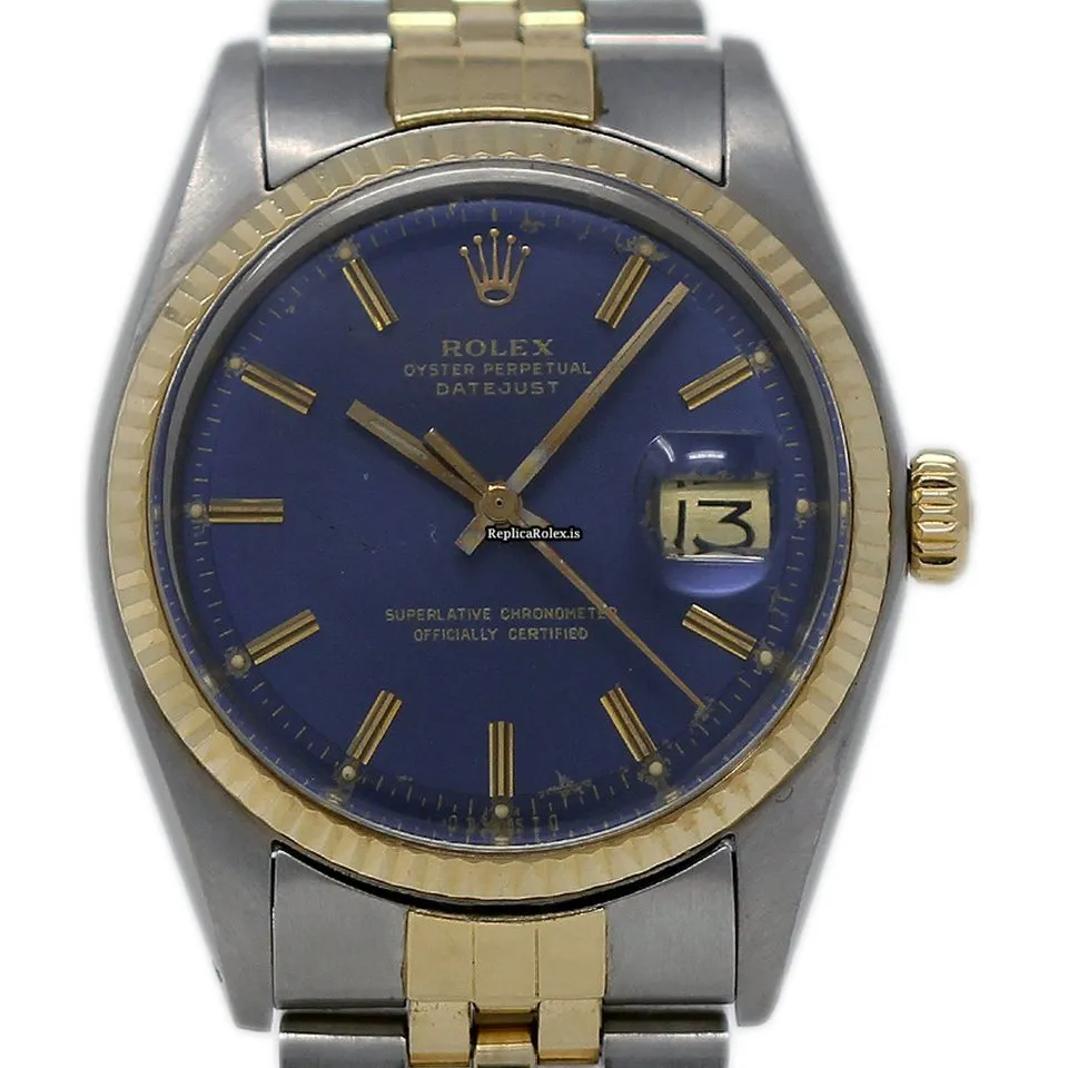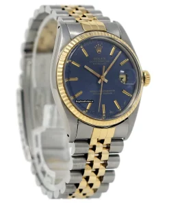 Tags: 10m atm, 1603, 185mm bracelet length, 36mm case diameter, automatic movement, blue dial, gold/steel bracelet material, mens watches, plastic crystal, steel case material, unisex watches, yellow gold bezel material