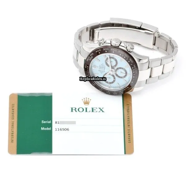 Tags: 10m atm, 116506, 170mm bracelet length, 40mm case diameter, automatic movement, blue dial, caliber 4130, ceramic bezel material, platinum bracelet material, platinum case material, sapphire crystal
