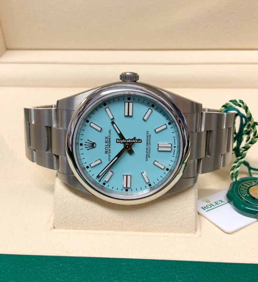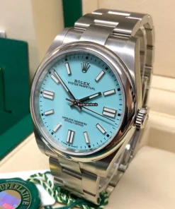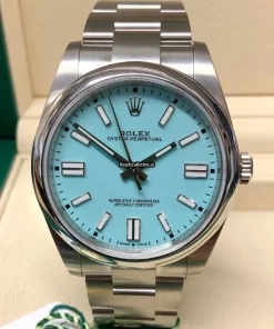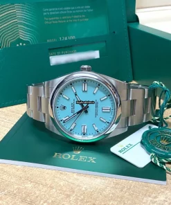 Tags: 10m atm, 124300, 31 jewels, 41mm case diameter, 70h power reserve, automatic movement, blue dial, caliber 3230, fold clasp, mens watches, no numerals, sapphire crystal, steel bezel material, steel bracelet color, steel bracelet material, steel case material, steel clasp material, unisex watches