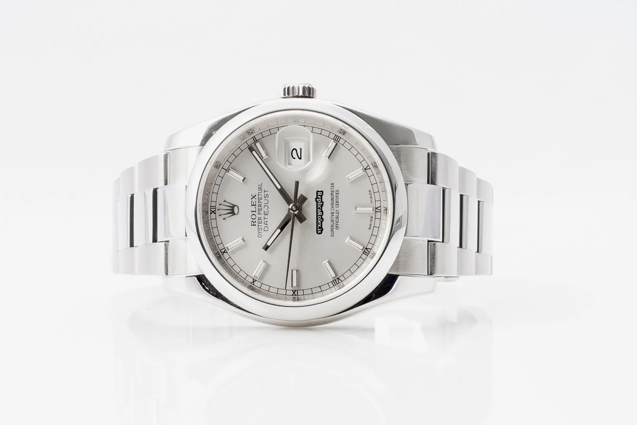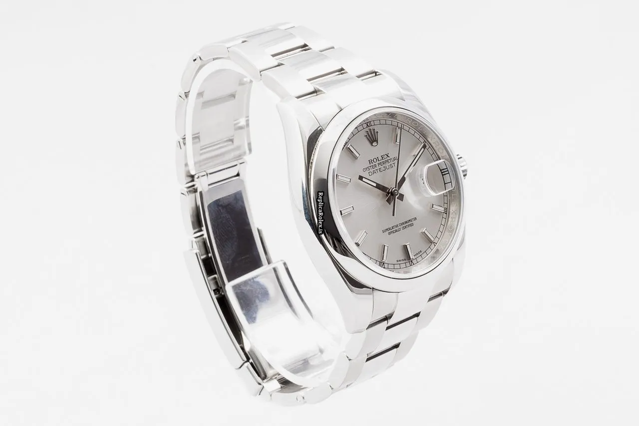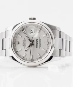 Tags: 10m atm, 116200, 31 jewels, 36mm case diameter, 48h power reserve, automatic movement, caliber 3135, fold clasp, mens watches, sapphire crystal, silver dial, steel bezel material, steel bracelet color, steel bracelet material, steel case material, steel clasp material, unisex watches