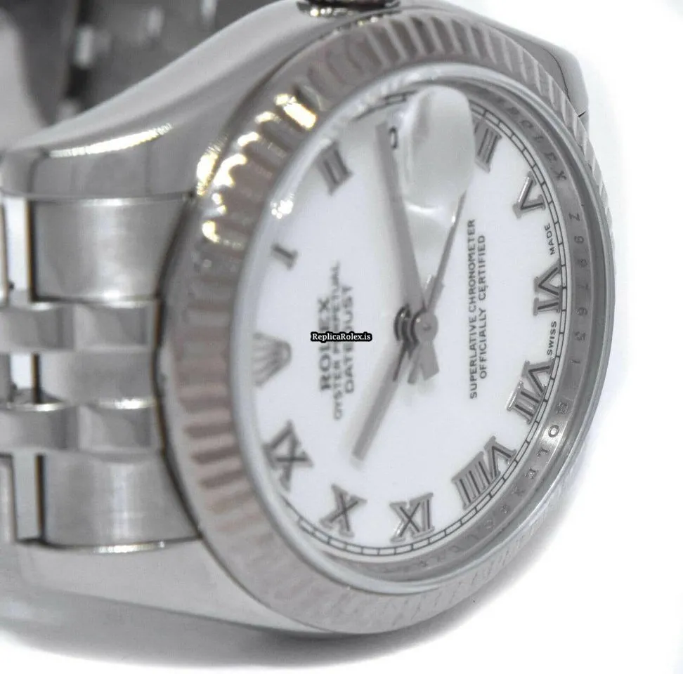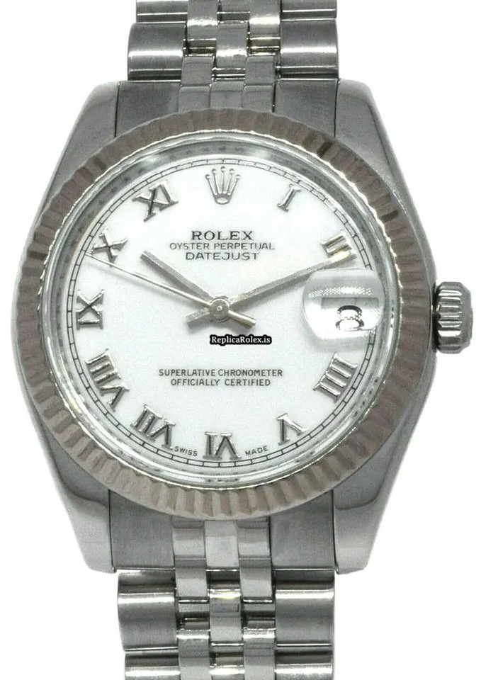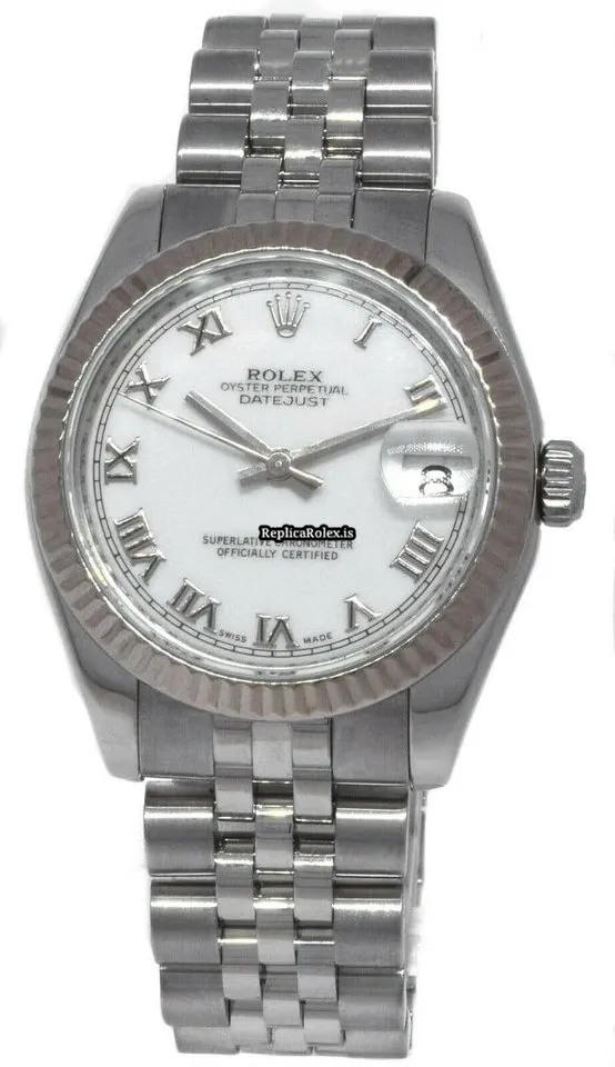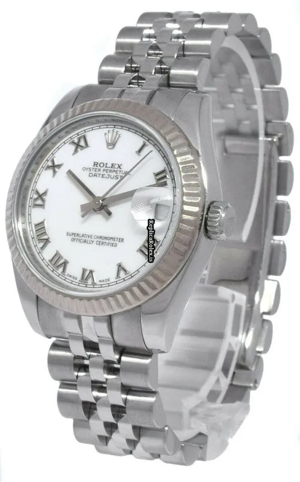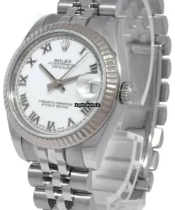 Tags: 178274, 31mm case diameter, automatic movement, fold clasp, roman numerals, steel bracelet color, steel bracelet material, steel case material, white dial, white gold bezel material, womens watches