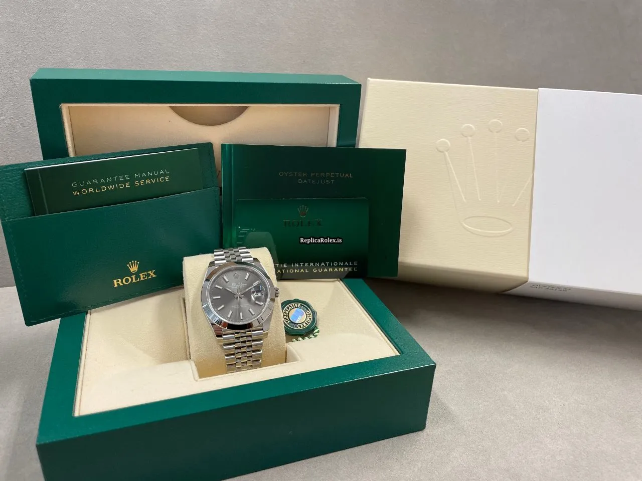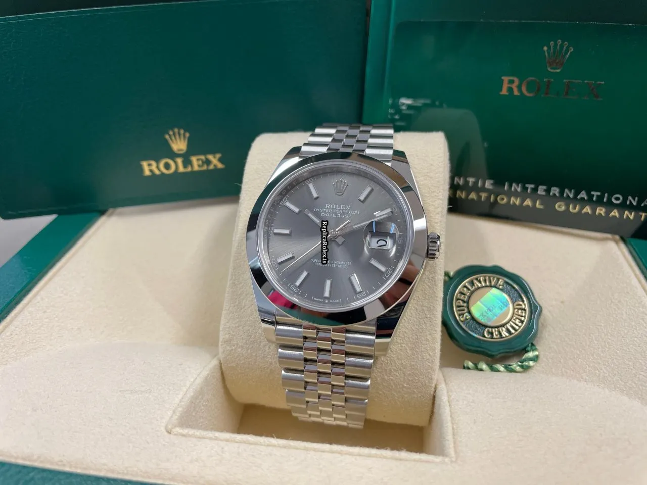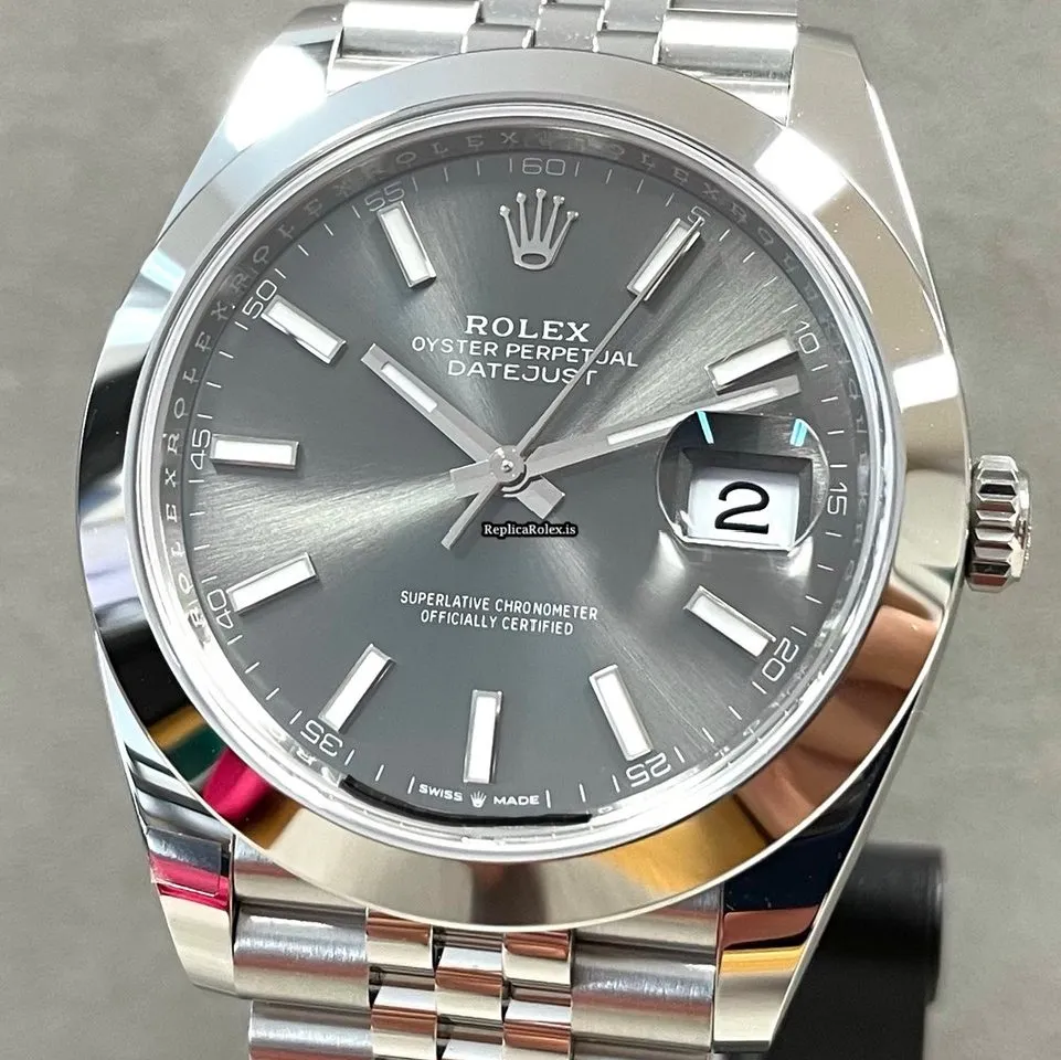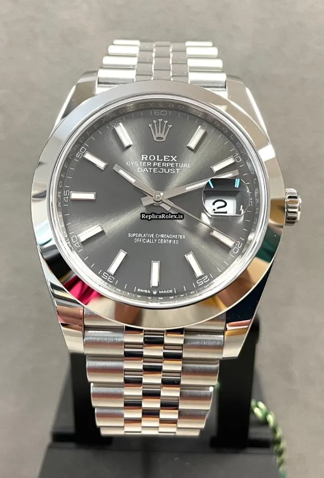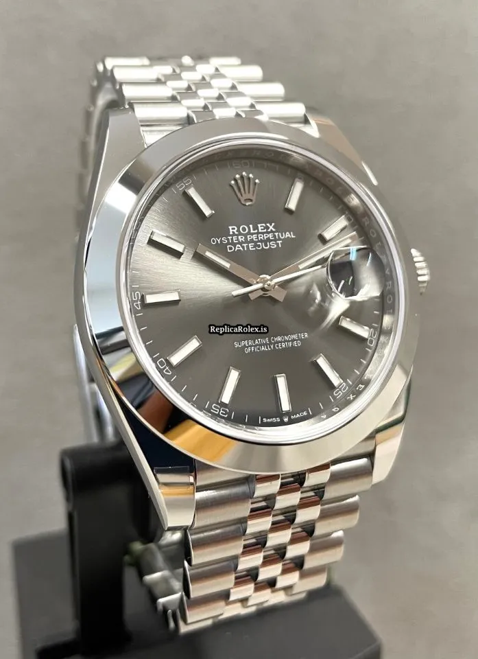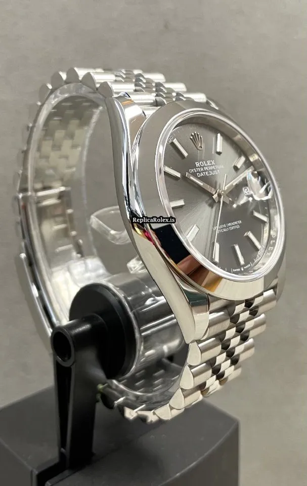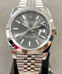 Tags: 10m atm, 126300, 31 jewels, 41x48mm case diameter, 70h power reserve, automatic movement, caliber 3135, caliber 3235, fold clasp, grey dial, mens watches, no numerals, sapphire crystal, steel bezel material, steel bracelet color, steel bracelet material, steel case material, steel clasp material, unisex watches