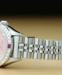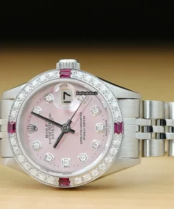 Tags: 13mm lug width, 165mm bracelet length, 26mm case diameter, 28 jewels, 6916, automatic movement, caliber 2030, pink dial, sapphire crystal, steel bracelet color, steel bracelet material, steel case material, white gold bezel material, womens watches