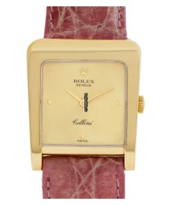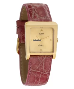 Tags: 160mm bracelet length, 18mm lug width, 4100, 7mm, crocodile skin bracelet material, gold dial, manual winding movement, no numerals, yellow gold bezel material