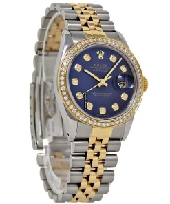 Tags: 10m atm, 16013, 200mm bracelet length, 36mm case diameter, automatic movement, blue dial, gold/steel bracelet material, mens watches, plastic crystal, silver bracelet color, steel case material, unisex watches