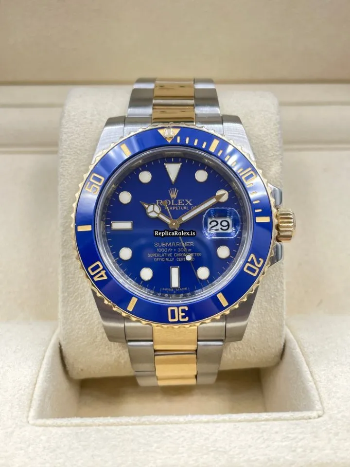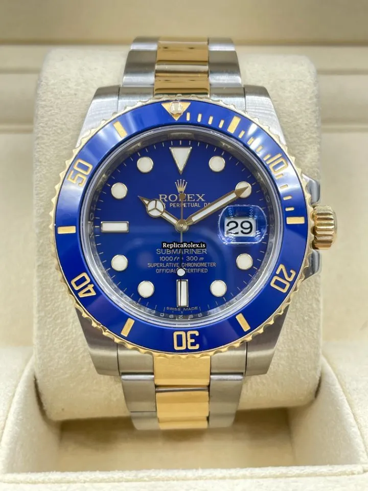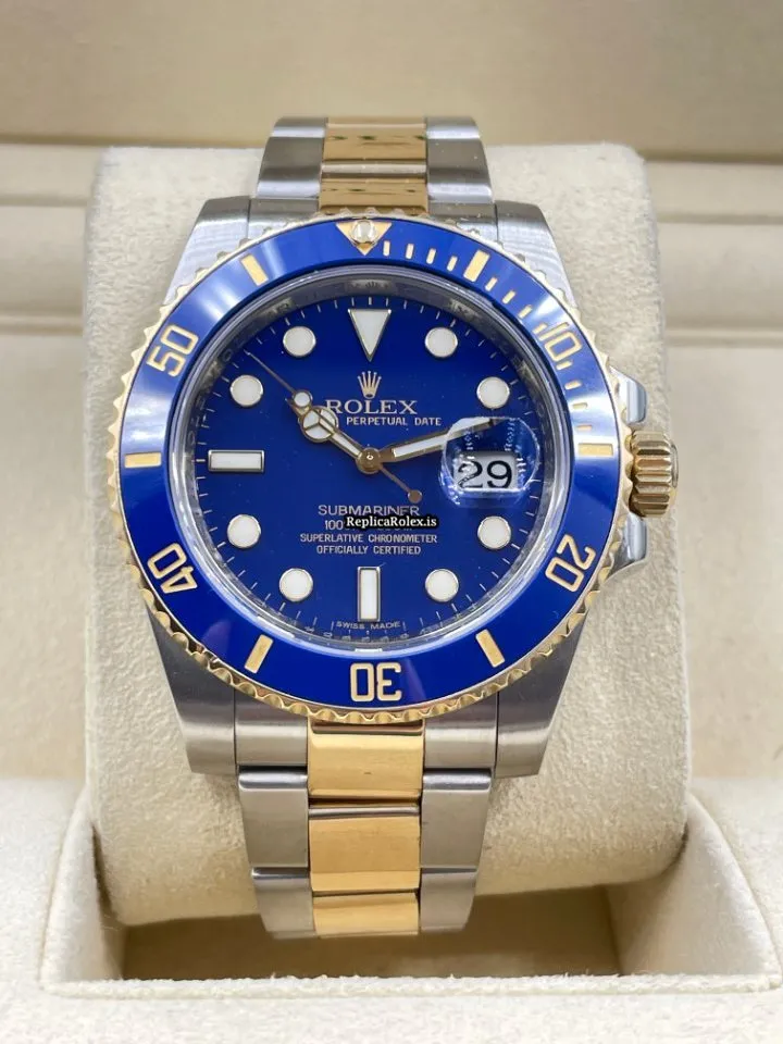 Tags: 116613lb, 30m atm, 31 jewels, 40mm case diameter, 50h power reserve, automatic movement, blue dial, caliber 3135, ceramic bezel material, fold clasp, gold/steel bracelet color, gold/steel bracelet material, gold/steel clasp material, mens watches, no numerals, sapphire crystal, steel case material, unisex watches