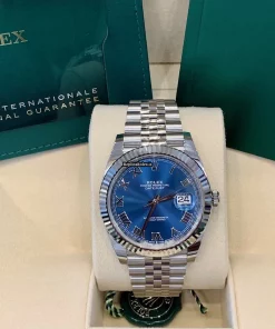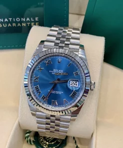 Tags: 10m atm, 126334, 31 jewels, 41mm case diameter, 70h power reserve, automatic movement, blue dial, caliber 3135, caliber 3235, fold clasp, mens watches, no numerals, sapphire crystal, steel bracelet color, steel bracelet material, steel case material, steel clasp material, unisex watches, white gold bezel material