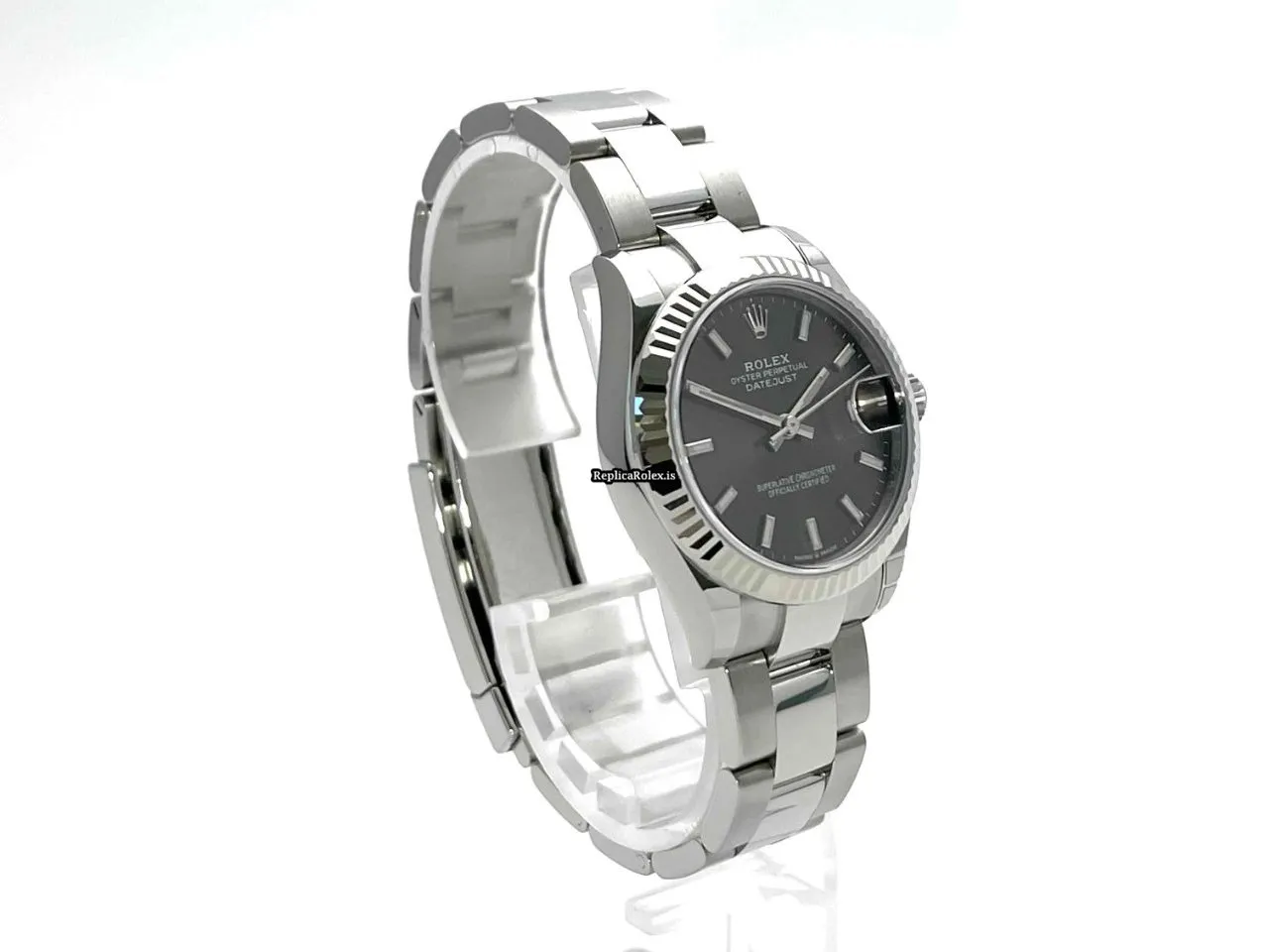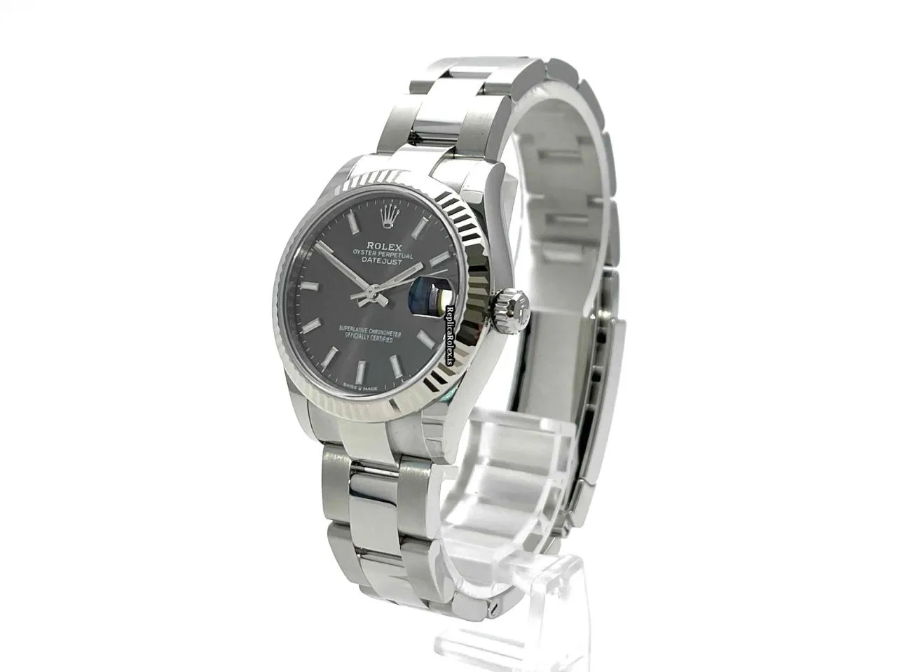 Tags: 10m atm, 10mm, 278274, 31 jewels, 31mm case diameter, 55h power reserve, automatic movement, caliber 2236, fold clasp, grey dial, no numerals, sapphire crystal, steel bracelet color, steel bracelet material, steel case material, steel clasp material, white gold bezel material, womens watches
