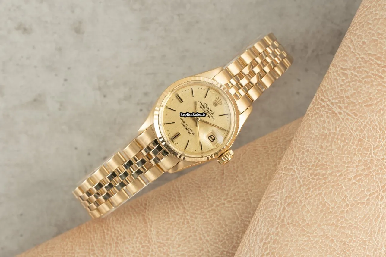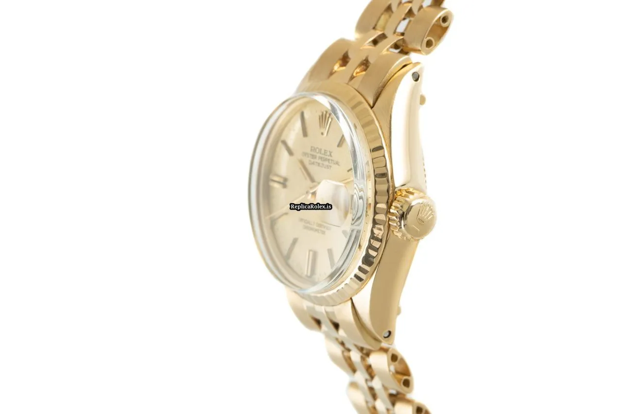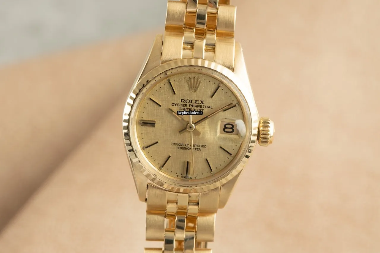 Fabulous Fake Rolex Oyster Perpetual Lady Date 6517 Caliber 1161 Automatic Movement 25mm Yellow Gold Case Womens Watch