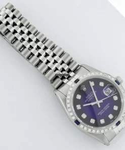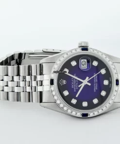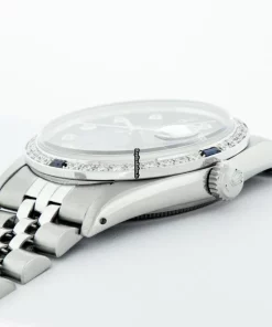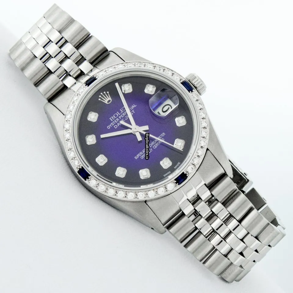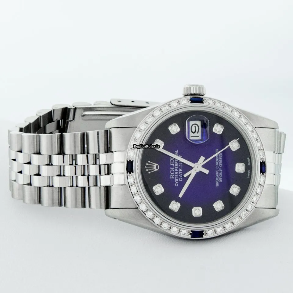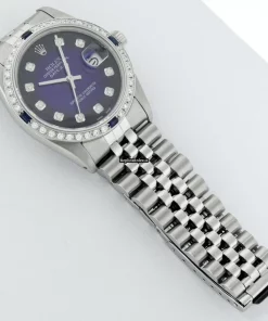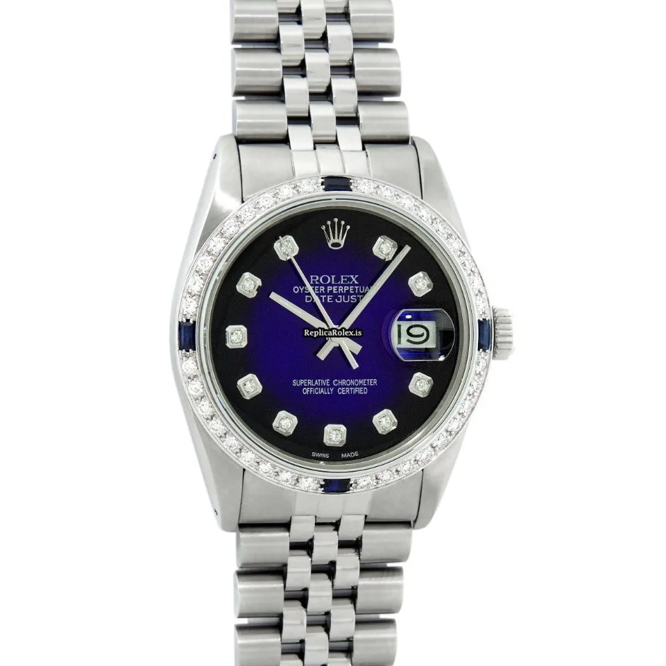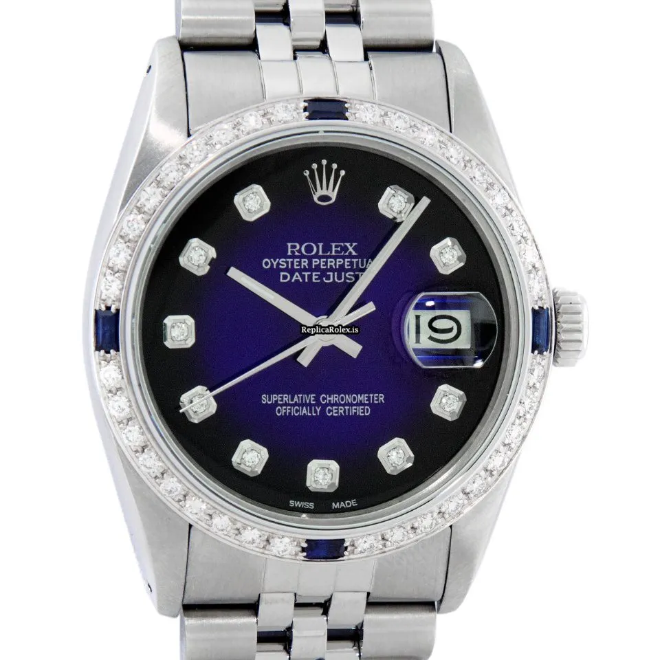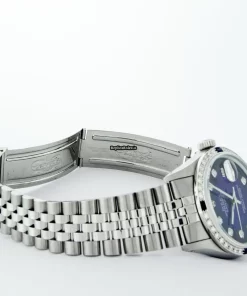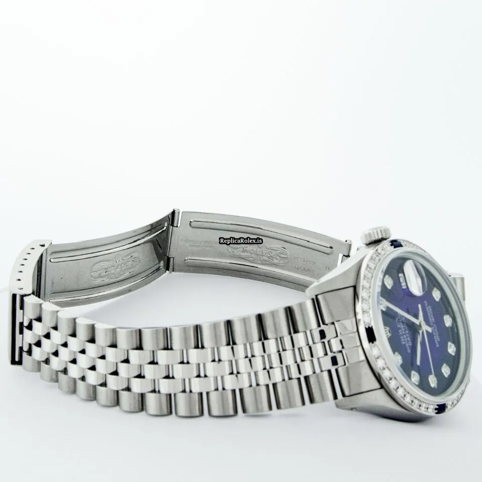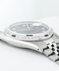 Tags: 16030, 20mm lug width, 27 jewels, 36mm case diameter, automatic movement, blue dial, caliber 3035, fold clasp, mens watches, sapphire crystal, silver bracelet color, steel bracelet material, steel case material, steel clasp material, unisex watches, white gold bezel material