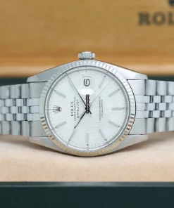 Tags: 13mm, 16014, 1m atm, 27 jewels, 36x42mm case diameter, automatic movement, caliber 3035, fold clasp, mens watches, no numerals, plexiglass crystal, silver dial, steel bracelet color, steel bracelet material, steel case material, steel clasp material, unisex watches, white gold bezel material