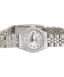 Tags: 10m atm, 26mm case diameter, 29 jewels, 42h power reserve, 69174, automatic movement, caliber 2135, fold clasp, mother of pearl dial, no numerals, sapphire crystal, steel bracelet color, steel bracelet material, steel case material, steel clasp material, white gold bezel material, womens watches