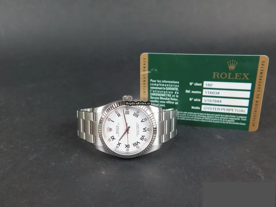 Tags: 11.6mm, 116034, 36mm case diameter, automatic movement, fold clasp, mens watches, sapphire crystal, steel bracelet color, steel bracelet material, steel case material, steel clasp material, unisex watches, white dial