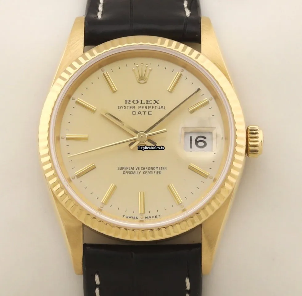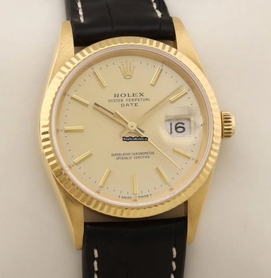 Fantastic Replica Rolex Oyster Perpetual Date 15238 Caliber 3135 Automatic Movement 34mm Yellow Gold Case Mens/unisex Watch